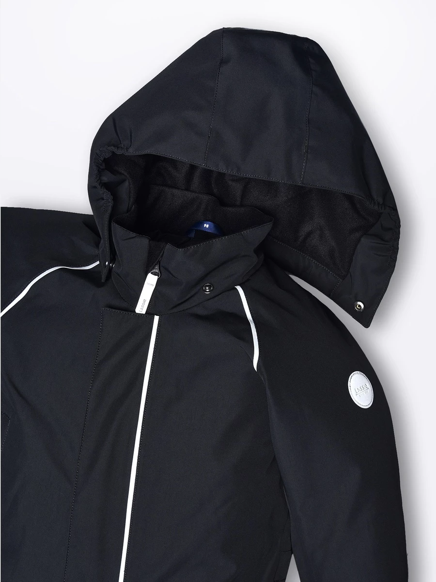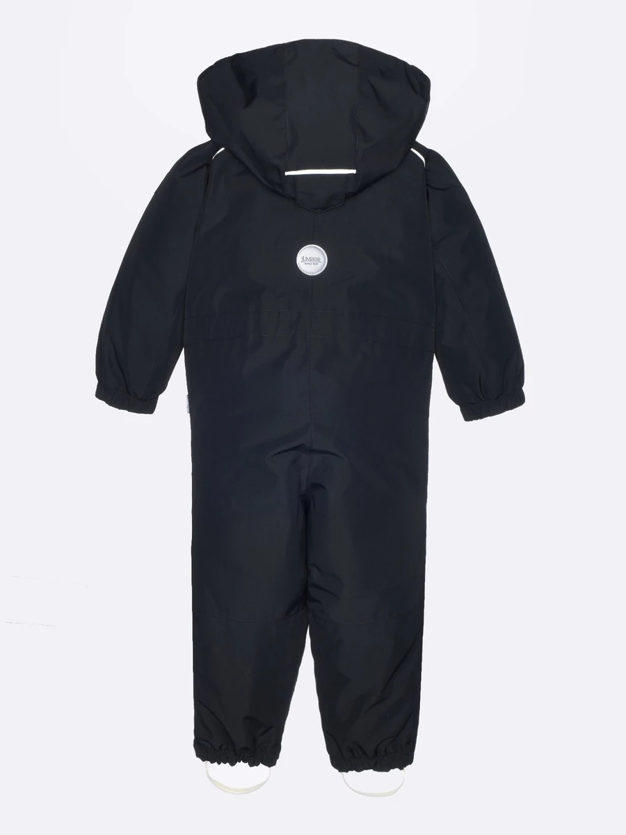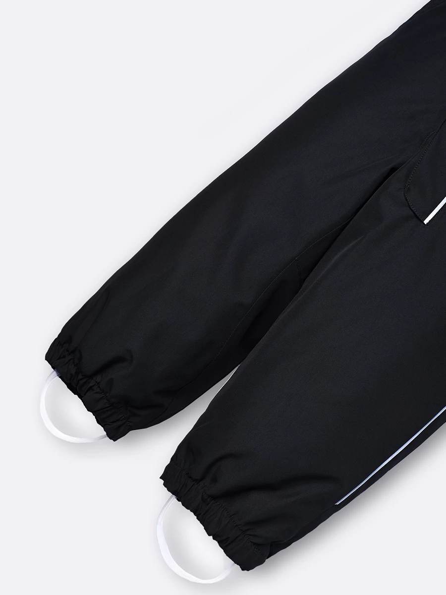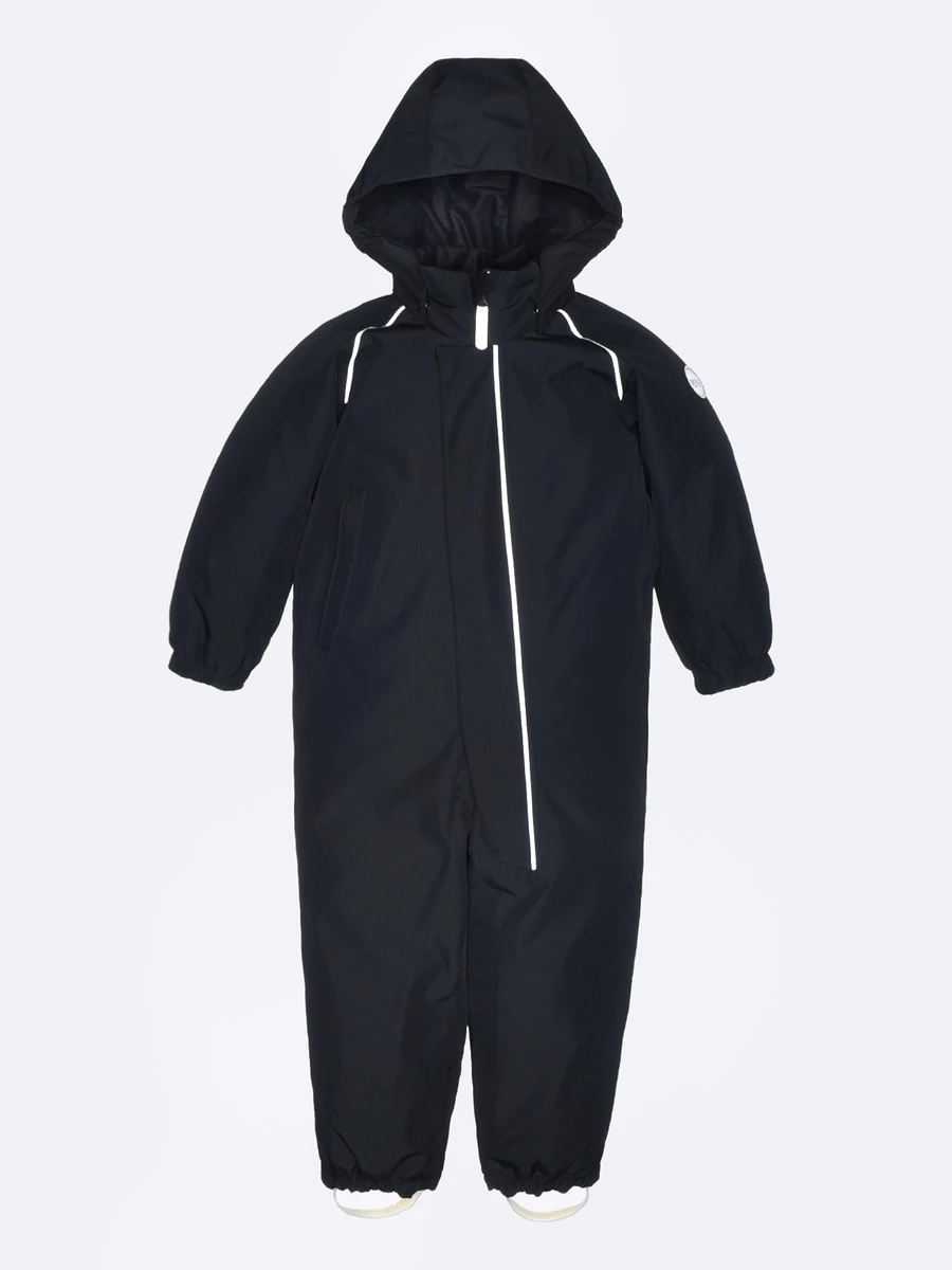 Комбинезон рассчитан на температуру от +5°C до -10°C. Модель имеет безопасный съемный капюшон с регулировкой. Эластичные манжеты на рукавах и съемные штрипки защищают от ветра. На воротнике и капюшоне вставки из флиса и гладкая подкладка. Комбинезон можно регулировать по талии. На груди расположен карман на молнии. Есть светоотражающие элементы. Изготовлен из таслана. Материал имеет водо- и грязеотталкивающую пропитку без фторуглеродов.