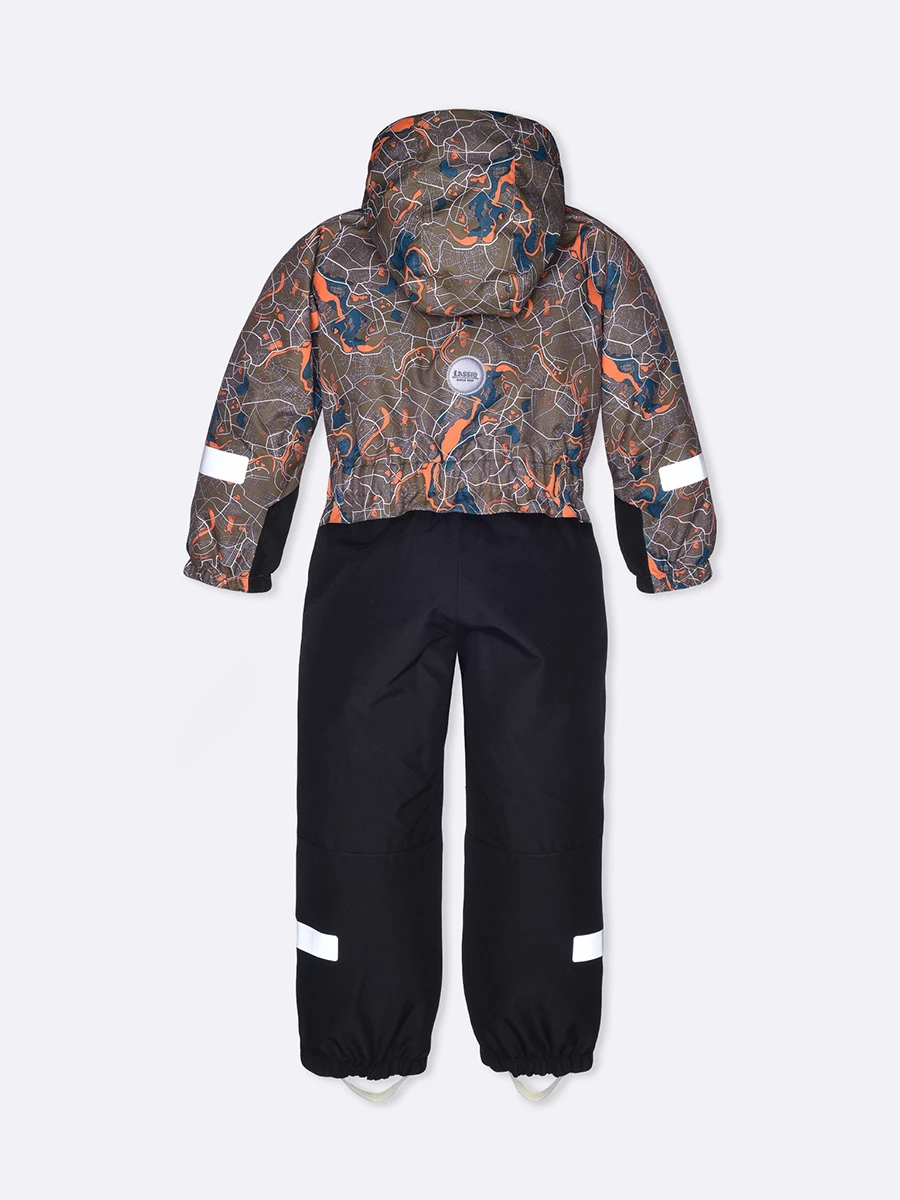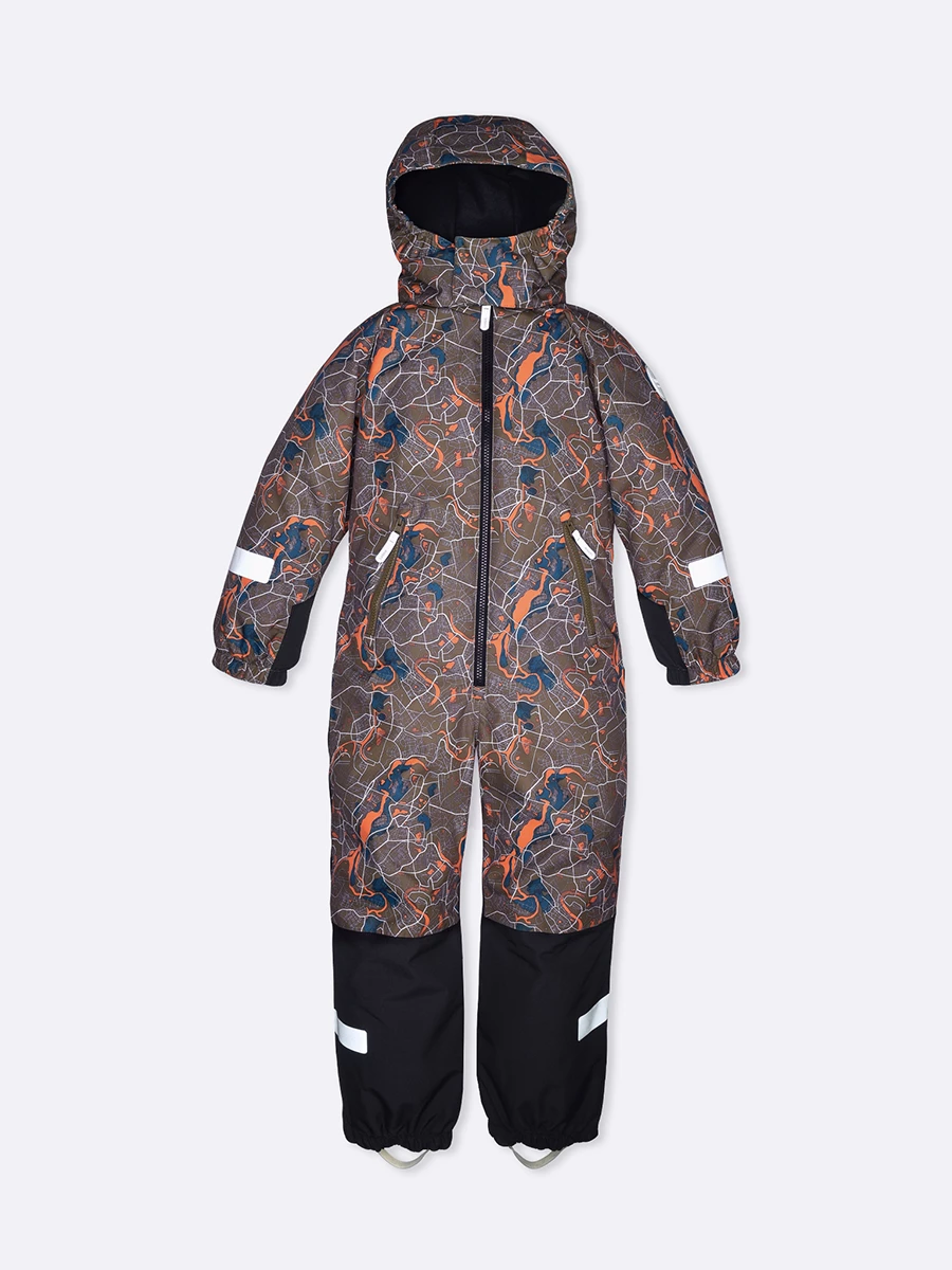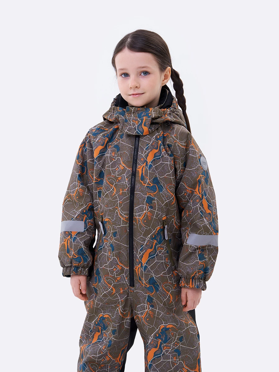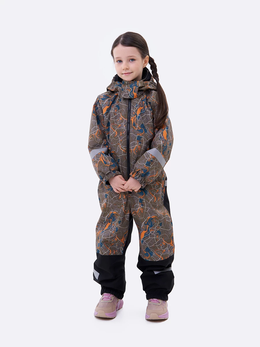 Комбинезон из таслана. Подходит для температуры от +5 до -10°C. Снаружи — прочный материал с запаянными водонепроницаемыми швами. Водо- и грязеотталкивающая экологичная пропитка Bionic-Finish® Eco. Внутри — мягкая подкладка из таффеты. Капюшон, манжеты и ворот дополнительно утеплены флисом. Стоппер на молнии спасает подбородок от «закусывания». Капюшон отстегивается. У него есть дополнительная застежка-липучка. Два кармана на молнии. Внутренние лямки позволяют легко снять комбинезон в помещении, чтобы не было жарко. Укрепленные вставки на брючинах повышают износостойкость. Съемные эластичные штрипки для надежной фиксации. Добавлены светоотражающие детали на рукавах и штанинах.
