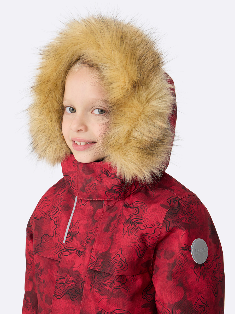 Куртка рассчитана температуру от -15 до -30 ℃. Внутри современный износостойкий утеплитель Fellex. Можно без опаски кататься на санках или гулять по снежному парку даже в суровый мороз.