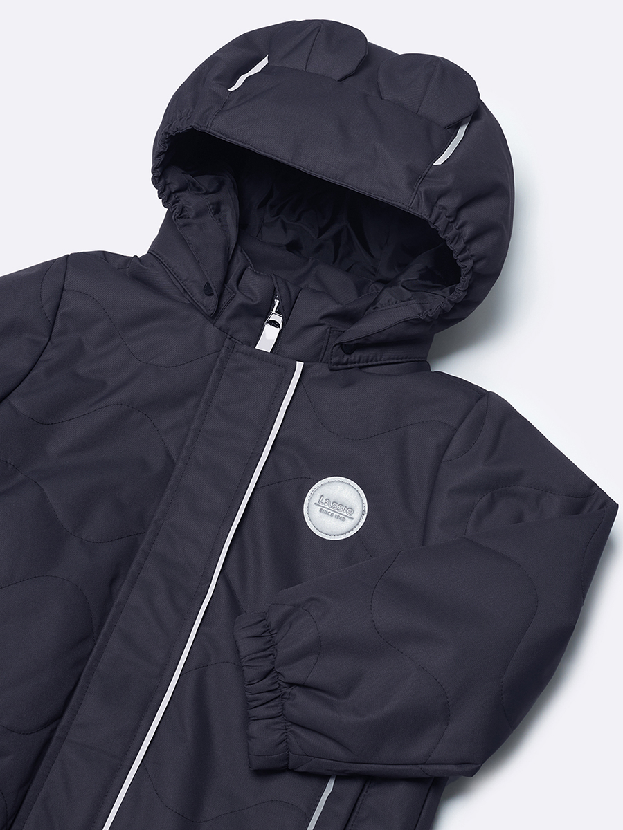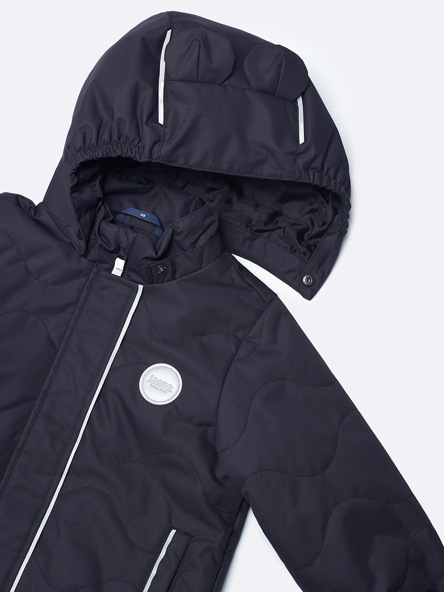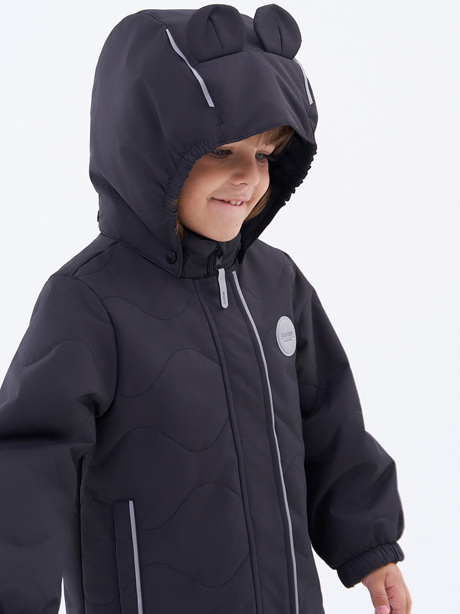 Утепленная куртка из таслана рассчитана на температуру от +5 до -10°. Ткань с водо- и грязеотталкивающим покрытием. Цветная подкладка из полиэстера. Ветронепроницаемый наполнитель Fellex. Отстегивающийся капюшон с декоративными «ушками». Два кармана на липучках. Манжеты на резинке предотвращают попадание холодного воздуха. Стоппер на молнии защищает подбородок от случайных защемлений. Есть светоотражающие элементы.