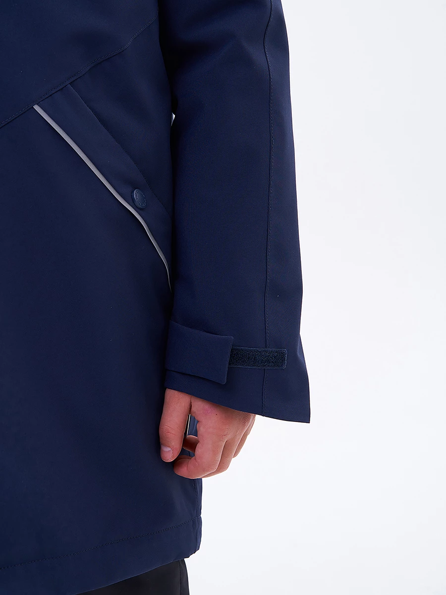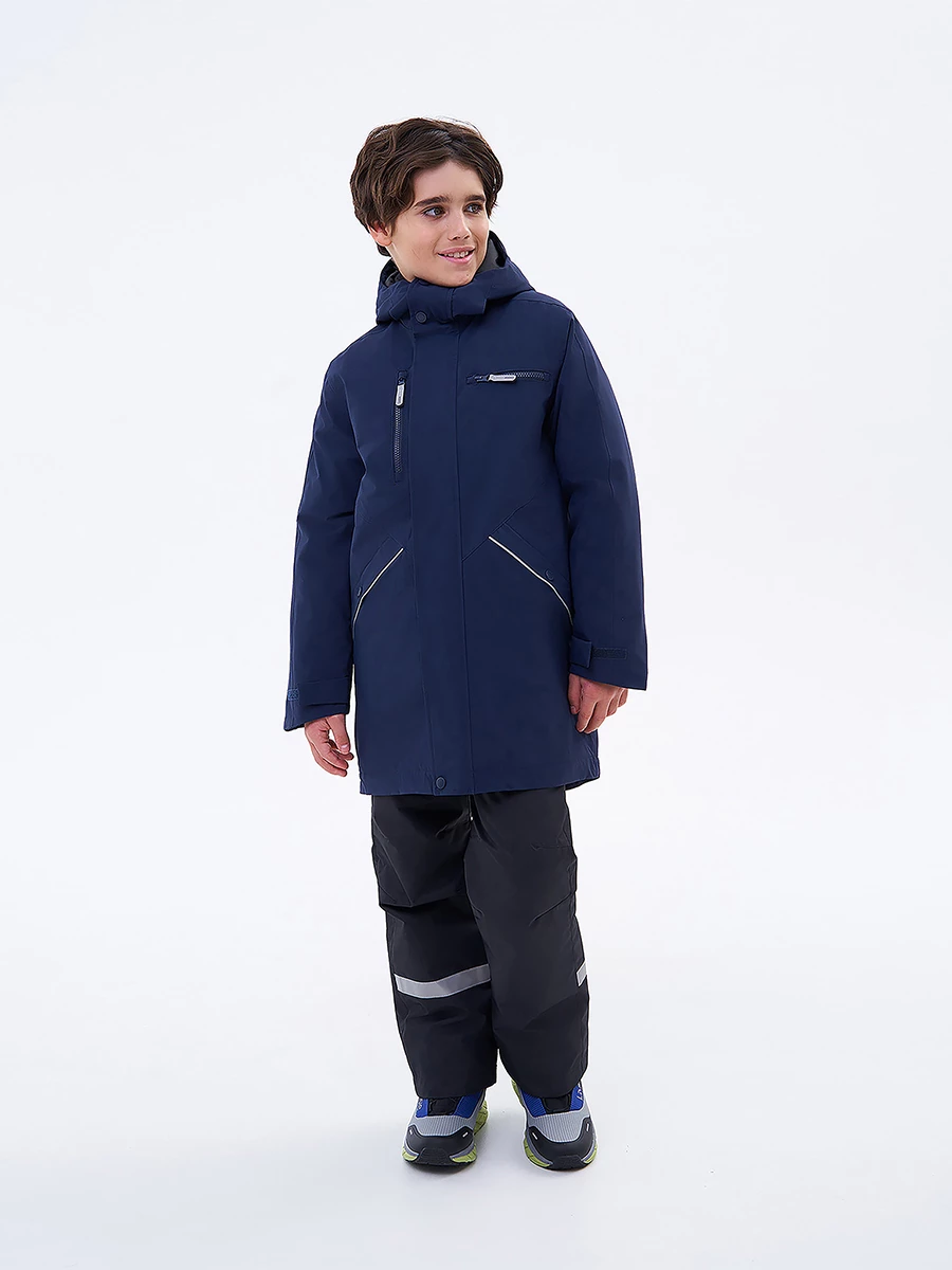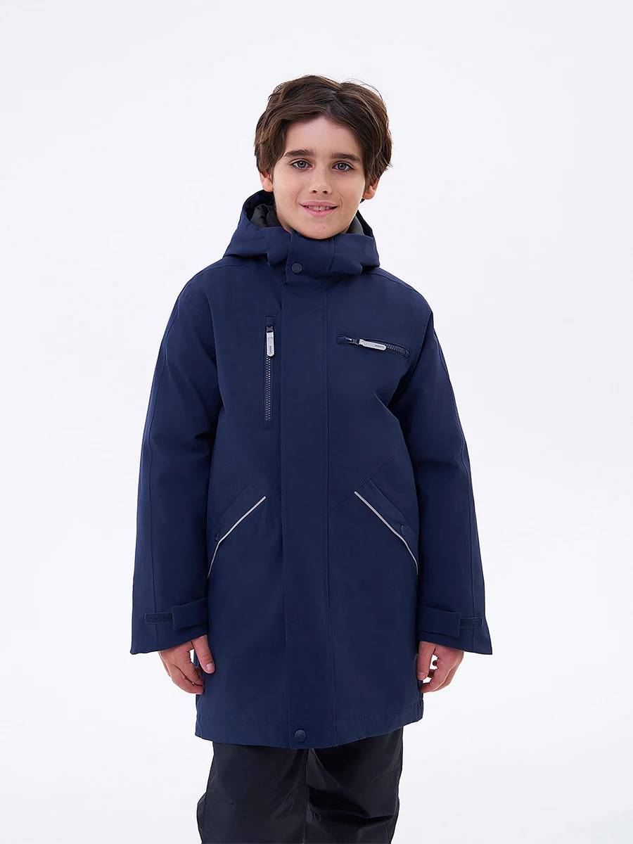 Куртка утепленная из эпонжа. Подходит для температуры от +5 до -10°C. Снаружи материал с водонепроницаемой мембраной. Экологичная пропитка Bionic-Finish® Eco без фторуглеродов защищает от влаги и грязи. Все швы запаяны. Подкладка из таффеты. Капюшон не отстегивается, регулируется липучкой по высоте и кулиской по бокам. Внутренние лямки позволяют легко снять куртку в помещении и не носить её в руках. У модели есть карманы: два боковых на кнопке и два нагрудных на молнии. Регулируемые манжеты на липучке. Застегивается на молнию, защитная планка спасает от ветра. Есть светоотражающие детали.
