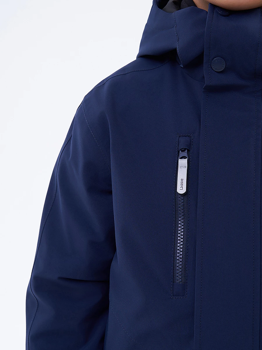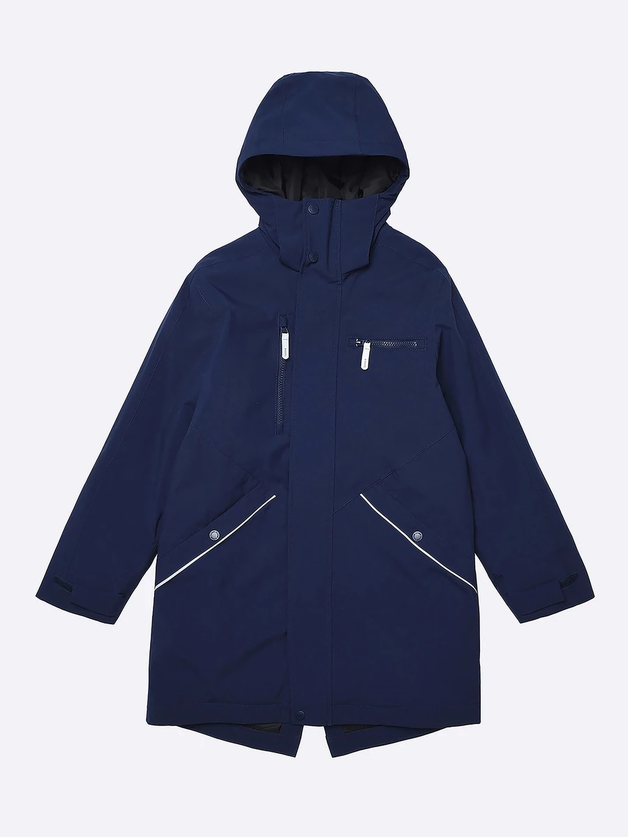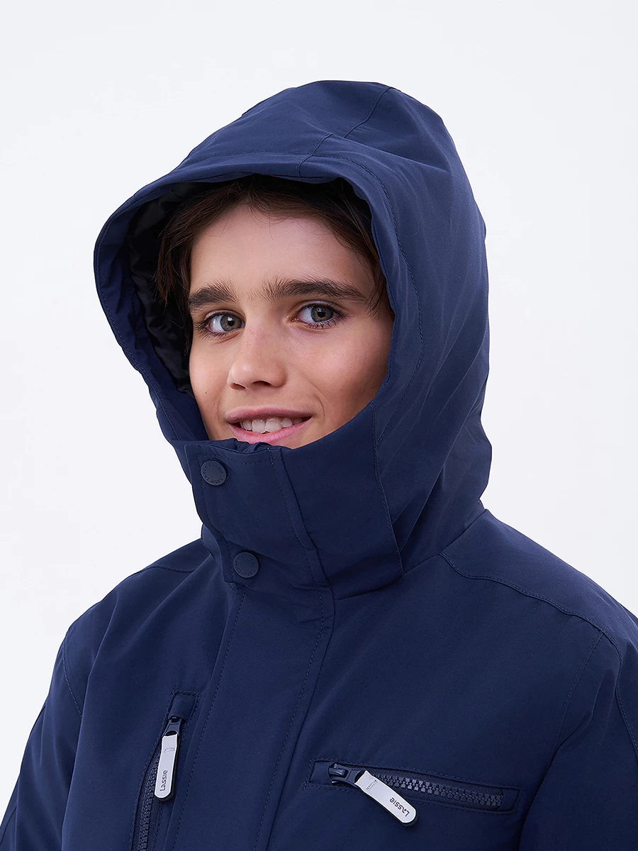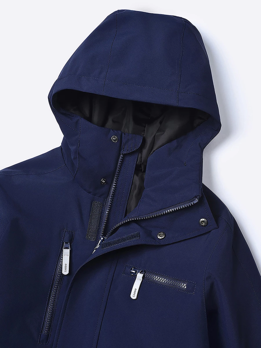 Куртка утепленная из эпонжа. Подходит для температуры от +5 до -10°C. Снаружи материал с водонепроницаемой мембраной. Экологичная пропитка Bionic-Finish® Eco без фторуглеродов защищает от влаги и грязи. Все швы запаяны. Подкладка из таффеты. Капюшон не отстегивается, регулируется липучкой по высоте и кулиской по бокам. Внутренние лямки позволяют легко снять куртку в помещении и не носить её в руках. У модели есть карманы: два боковых на кнопке и два нагрудных на молнии. Регулируемые манжеты на липучке. Застегивается на молнию, защитная планка спасает от ветра. Есть светоотражающие детали.