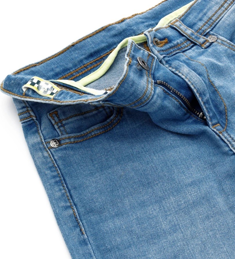 Модель брюк с пятью карманами из эластичного хлопкового денима, молния спереди, застежка на пуговицы, регулируемая талия внутри и индивидуальная этикетка.