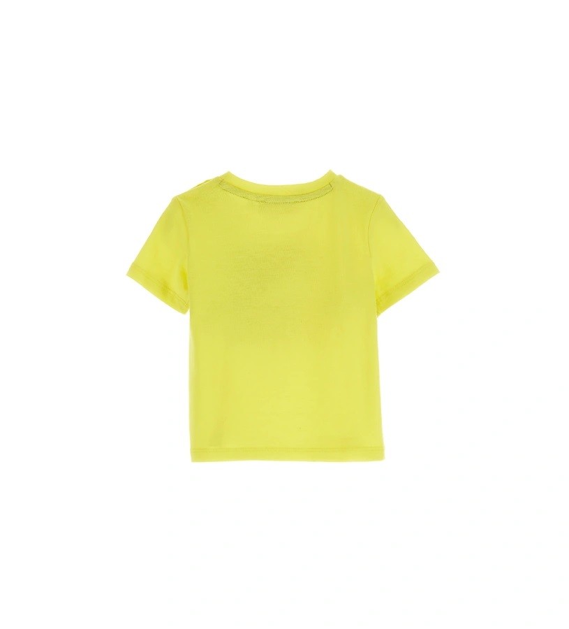 Футболка с короткими рукавами из плотного хлопка, застегивающаяся на кнопки на плече, принт спереди и этикетка снизу.