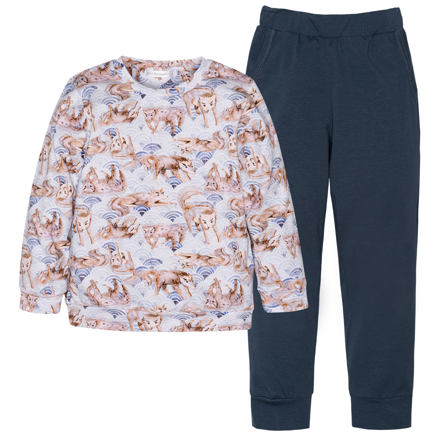 Яркая и комфортная пижама для мальчика: брюки и футболка с длинным рукавом.