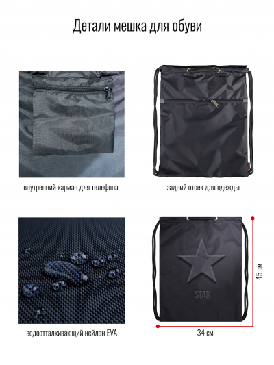 - Мешок имеет внутренний карман на молнии для мелочей и телефона.
