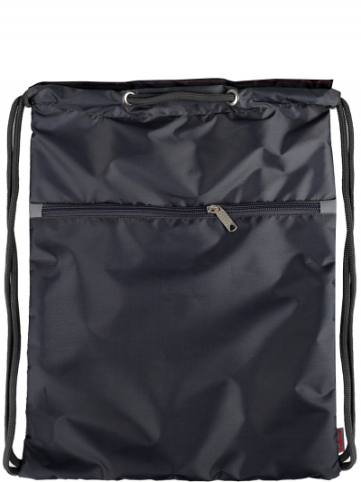 - Основное отделение затягивается толстыми шнуром, которые дополнительно выполняют функцию лямок, внешний карман застегивается на молнию.