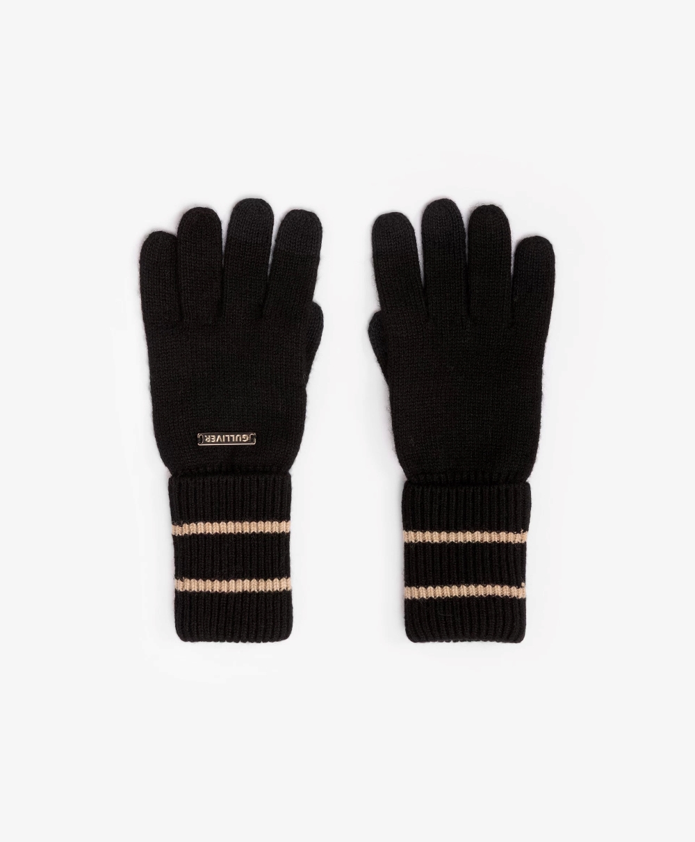 Вязаные перчатки черного цвета - стильный и практичный осенний вариант. Смесовая полушерстяная пряжа делает перчатки теплыми и уютными. Высокие манжеты способствуют плотному прилеганию изделия в районе запястья. В оформлении модели использована брендированная металлическая табличка.