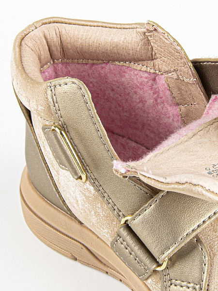 Стильные демисезонные ботинки для девочки с высокой долей шерсти в подкладке надежно защищают от холода. Облегченная подошва из ЭВА/ТЭПа эффективно сохраняет тепло. Антибактериальная стелька обеспечивает высокую гигиеничность. Наличие липучек упрощает процесс обувания