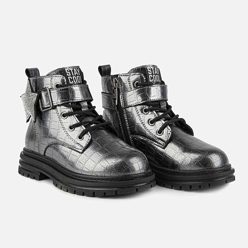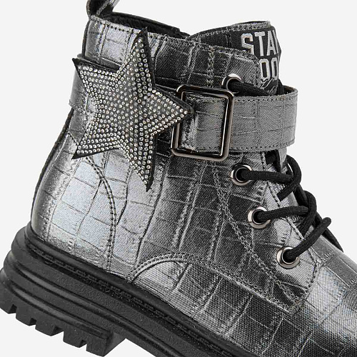 Стильные демисезонные ботинки на массивной подошве, украшены звездами из страз.Утепленная подкладка защищает от холода. Подошва из резины продлевает срок службы обуви т.к. практически не стирается и хорошо сохраняет тепло. Антибактериальная стелька обеспечит гигиеничность. А молния сбоку добавит удобство при обувании.