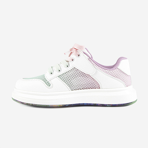 Стильные кроссовки не оставят равнодушными даже самых требовательных модниц. Мягкий вентилируемый материал верха, легкая амортизирующая подошва в сочетании с современным дизайном – все это делает данную модель незаменимым спутником любого ребенка. Модель оснащена кожаной антибактериальной стелькой, которая не только эффективно поглощает влагу и неприятные запахи, но и снижает ударную нагрузку.