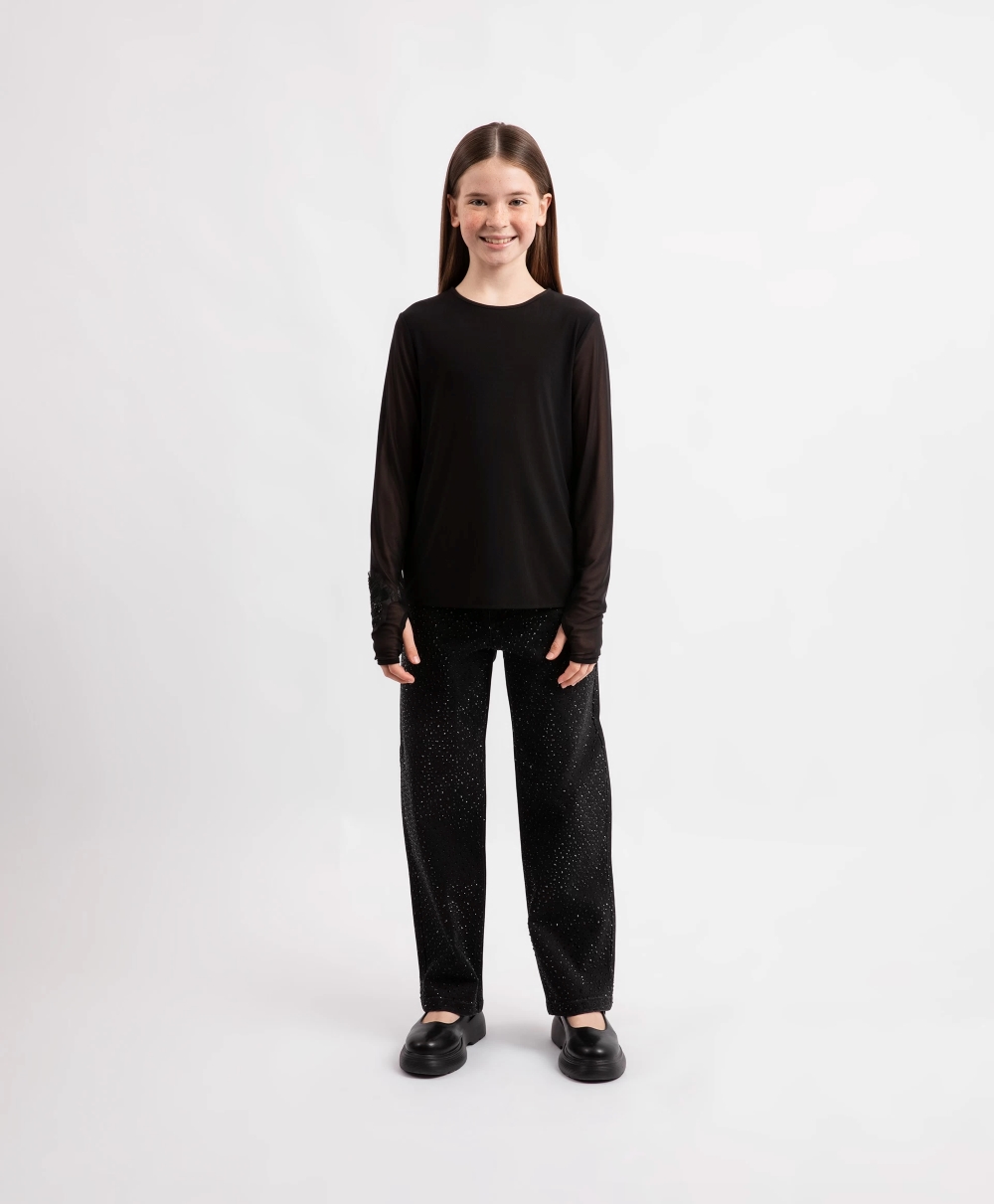 Блузка с длинным рукавом из сетки для девочки Артикул: 225GPGJC2203