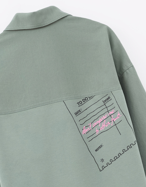 Комбинированная джуда из твила и футера в утилитарном стиле. Расслабленный прямой силуэт с приспущенной линией плеча. Тактильно приятный материал, накладные карманы, рукава можно подвернуть. Цифровая печать и термоплёнка в декоре, удобные кнопки.
