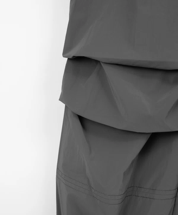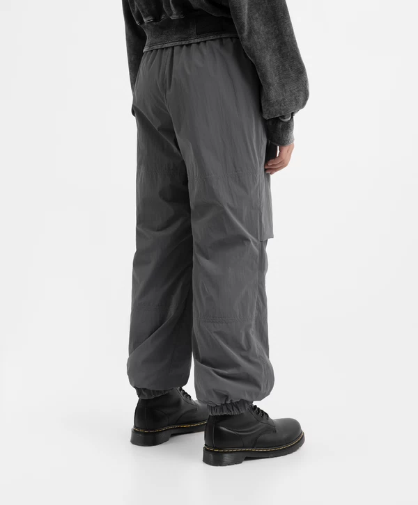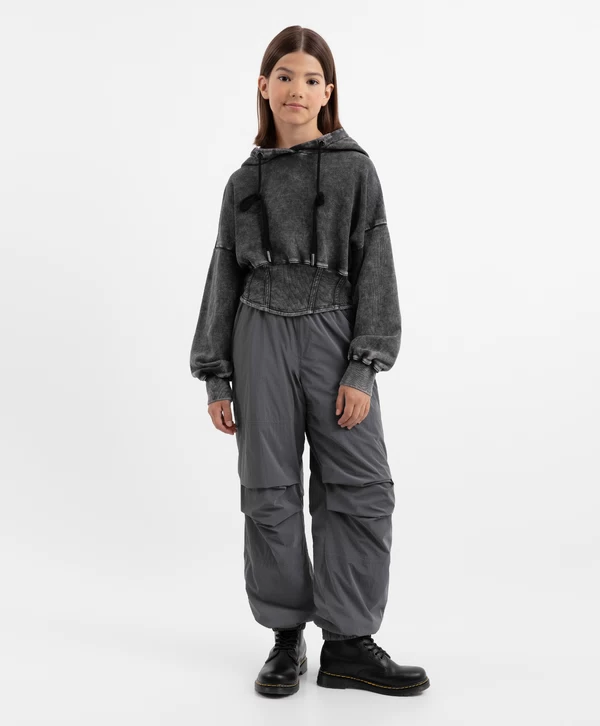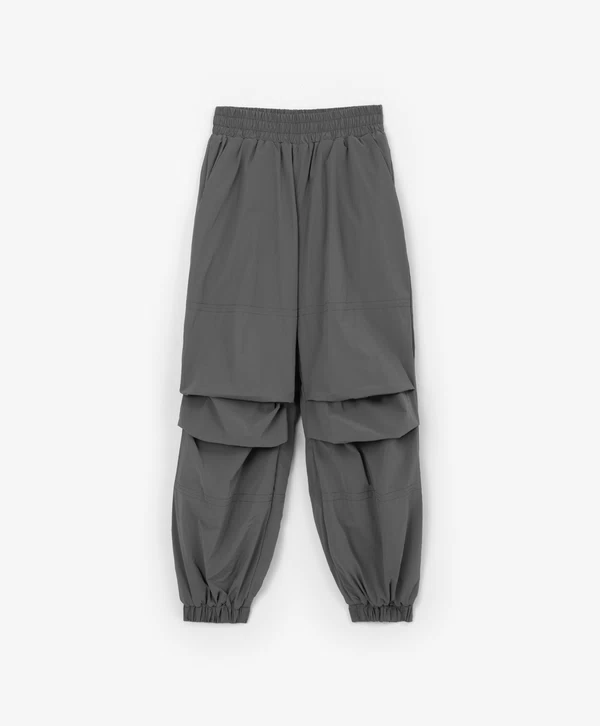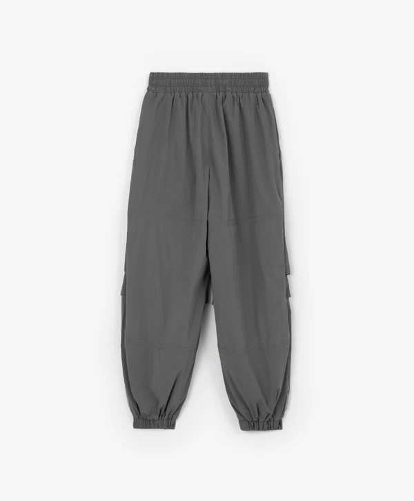 Серые демисезонные брюки свободной формы — идеальный вариант для подростков в холодную погоду! Утеплённая модель трендового кроя с манжетами прекрасно впишется в непринуждённые образы девочки. Брюки выполнены из плотного нейлона, обладающего влагоотталкивающими и ветрозащитными свойствами. Брюки имеют прорезные карманы, в которых девочка может хранить важные мелочи, и эластичный пояс, плотно прилегающий к талии.