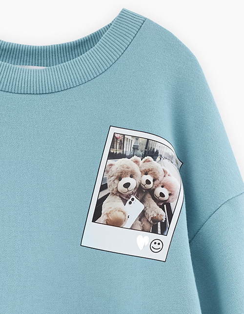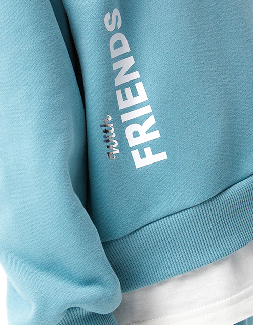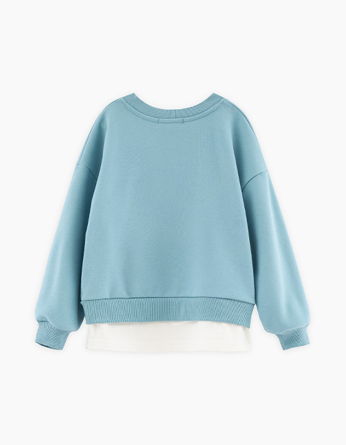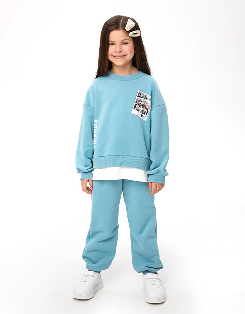 Свитшот с эффектом многослойности (свитшот + лонгслив) для девочки. Модель прямого объёмного силуэта. Спущенная линия плеча. Воротник, манжеты и низ свитшота из эластичной рибаны. Изделие из футера с бархатистым эффектом. Авторская DTF-печать.