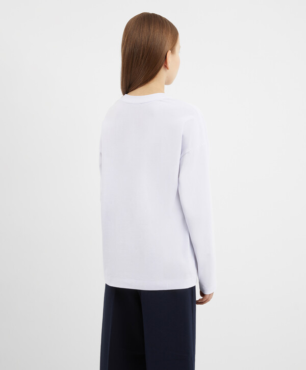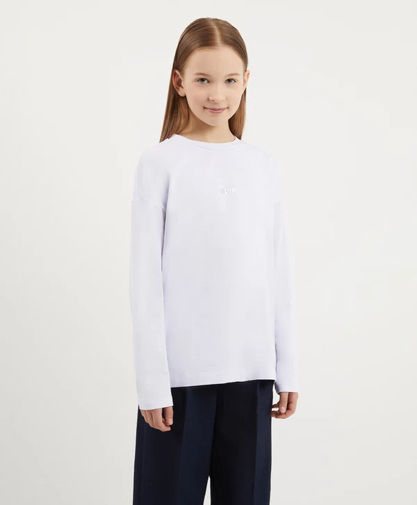 Для тех дней, когда хочется «просто и со вкусом» — белый лонгслив прямого свободного кроя со спущенной линией плеча! Он выполнен из гладкого трикотажа на основе хлопка. Материал приятен на ощупь и обладает прекрасной воздухопроницаемостью, поэтому в лонгсливе будет комфортно на протяжении всего дня. Девочка может сочетать изделие со свободными брюками из школьной коллекции для того, чтобы создать повседневный непринуждённый образ для школы.