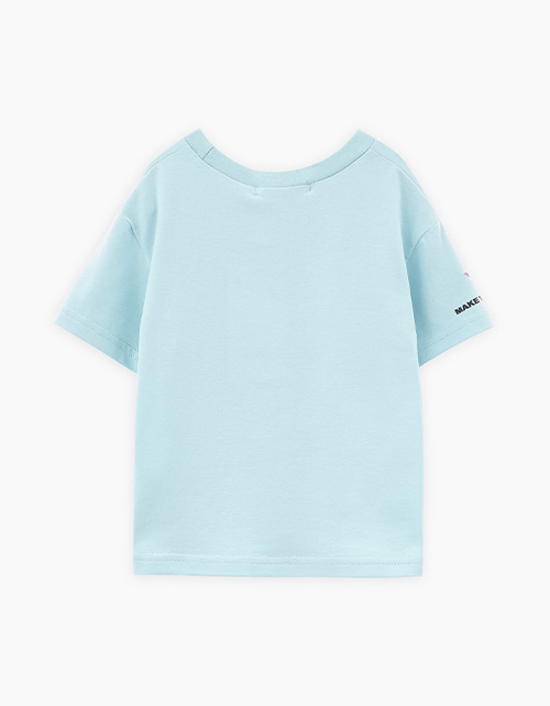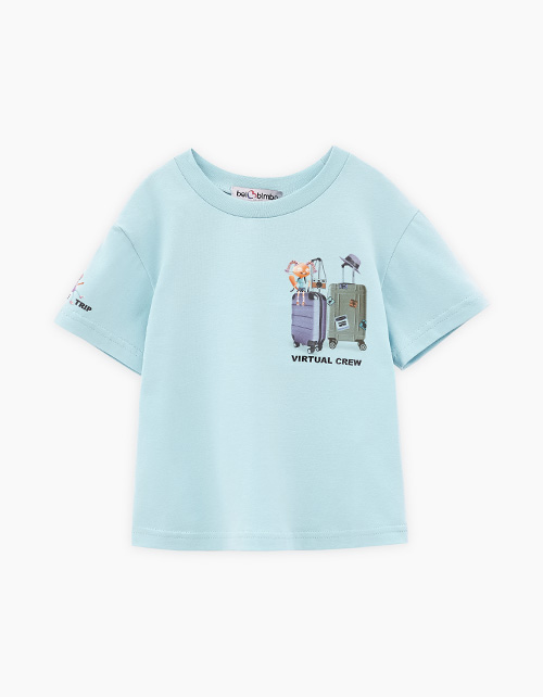 Дизайнерская футболка светло-бирюзового оттенка для девочки. Прямая объёмная модель. Спущенная линия плеча. Эластичная горловина. Футболка с авторскими принтами, инновационная DTF-печать, устойчивая к многократным стиркам.
