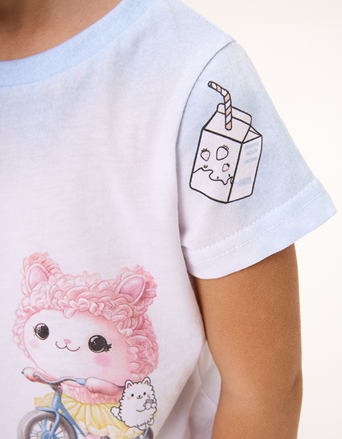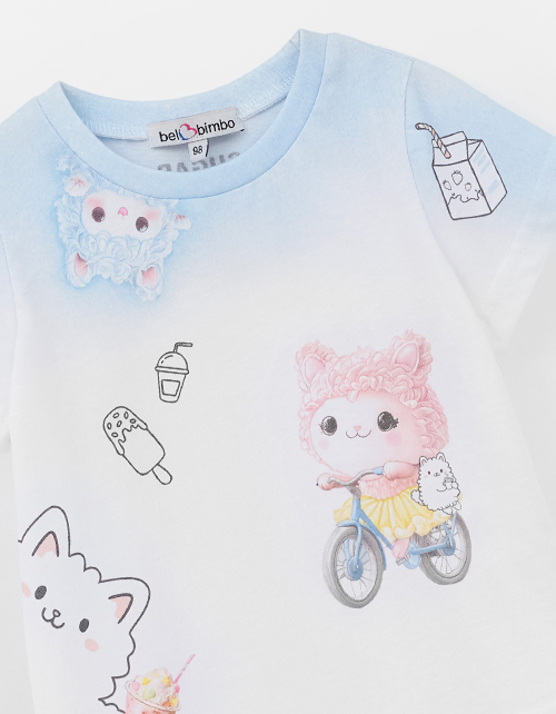 Футболка для девочки. Прямой силуэт обеспечивает комфорт. Яркий авторский принт, выполненный термотрансферной плёнкой и цифровой печатью, подчёрки