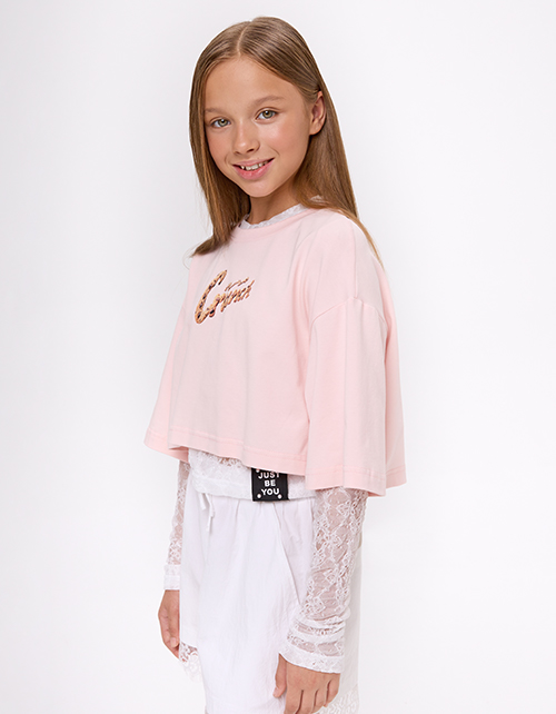Футболка укороченная для девочки Артикул: 260118розовая пудра
