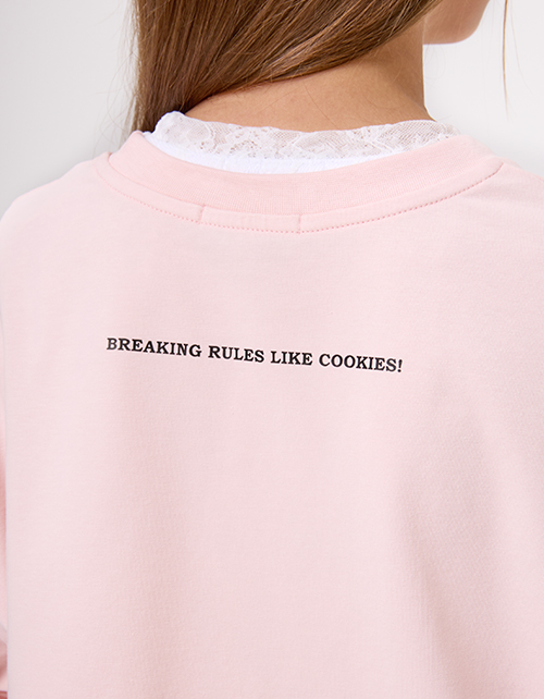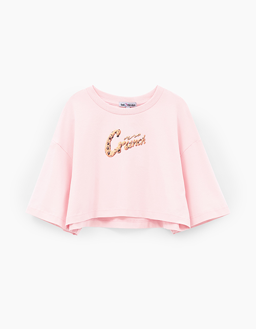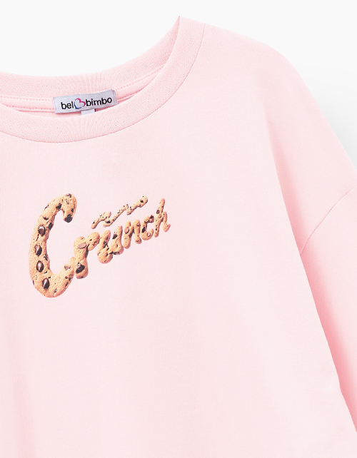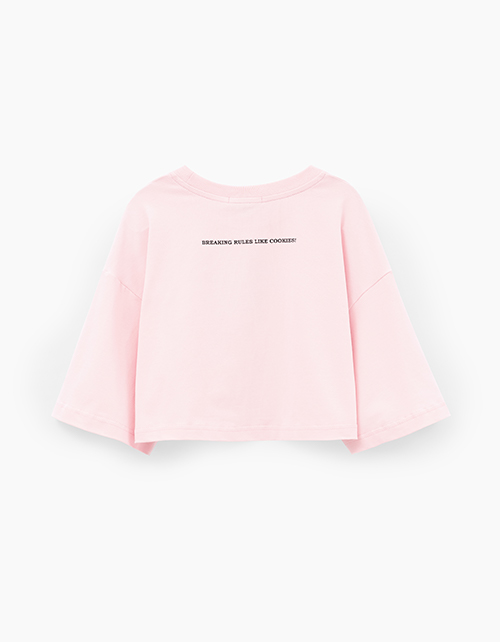 Пудрово-розовая укороченная футболка с oversize посадкой создаёт расслабленный, современный образ. Прямой крой остаётся удобным в движении. Принт с DTF и трансферной плёнкой добавляет выразительный акцент и подчёркивает характер модели.