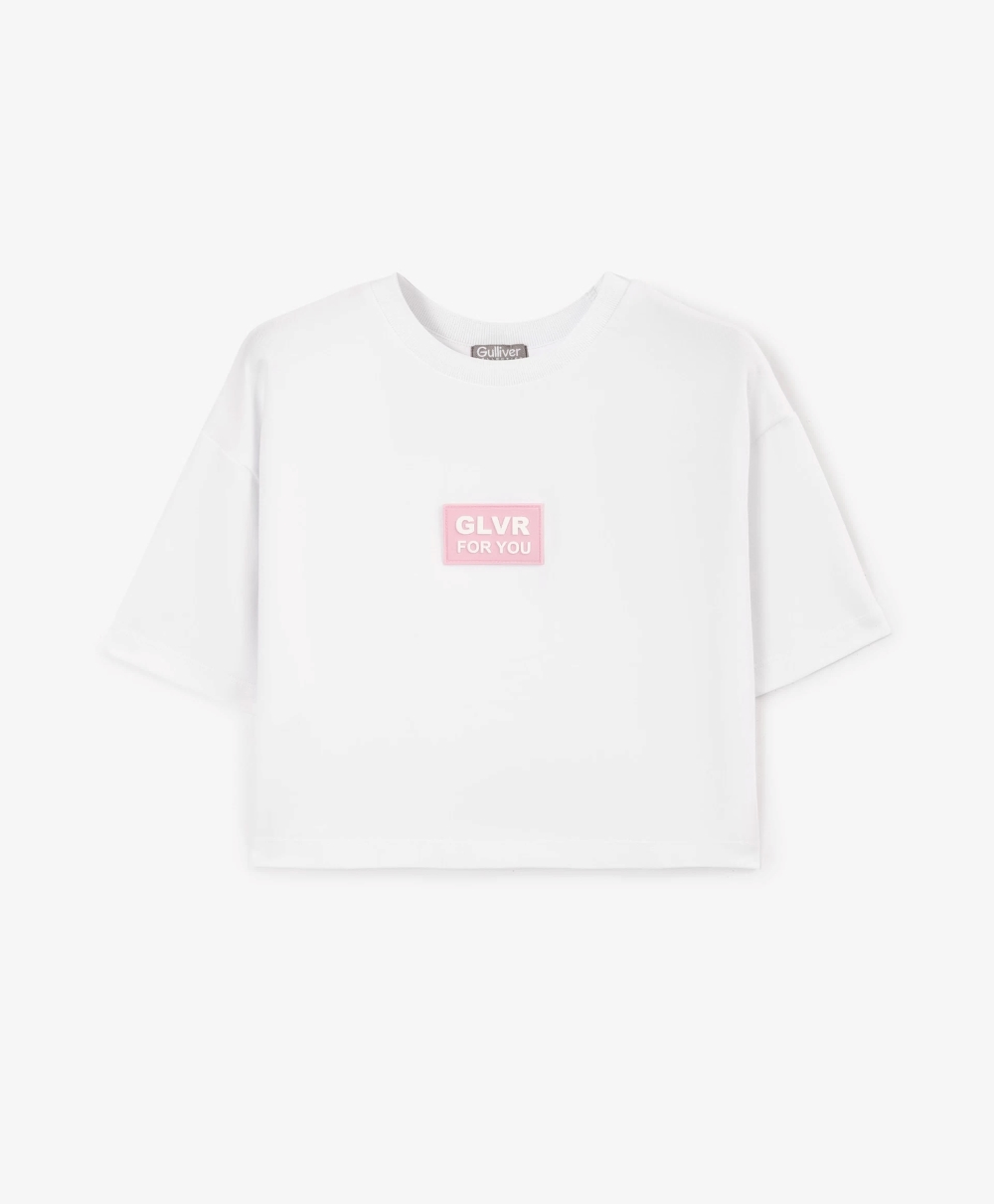 Футболка укороченная для девочки белая Артикул: 12503GMC1209
