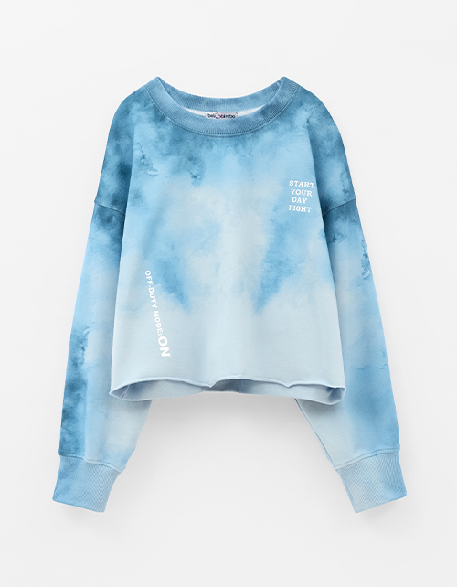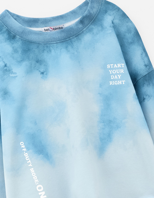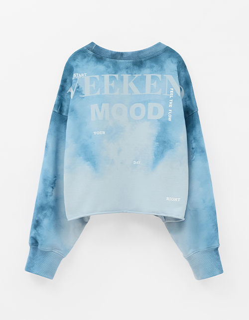 Укороченный свитшот из футера с браш-эффектом - мягкий и приятный на ощупь. Oversize-силуэт создаёт расслабленный современный образ. Цифровой принт с переходом на горловину и манжеты делает дизайн цельным, термоплёнка подчёркивает чёткость деталей.
