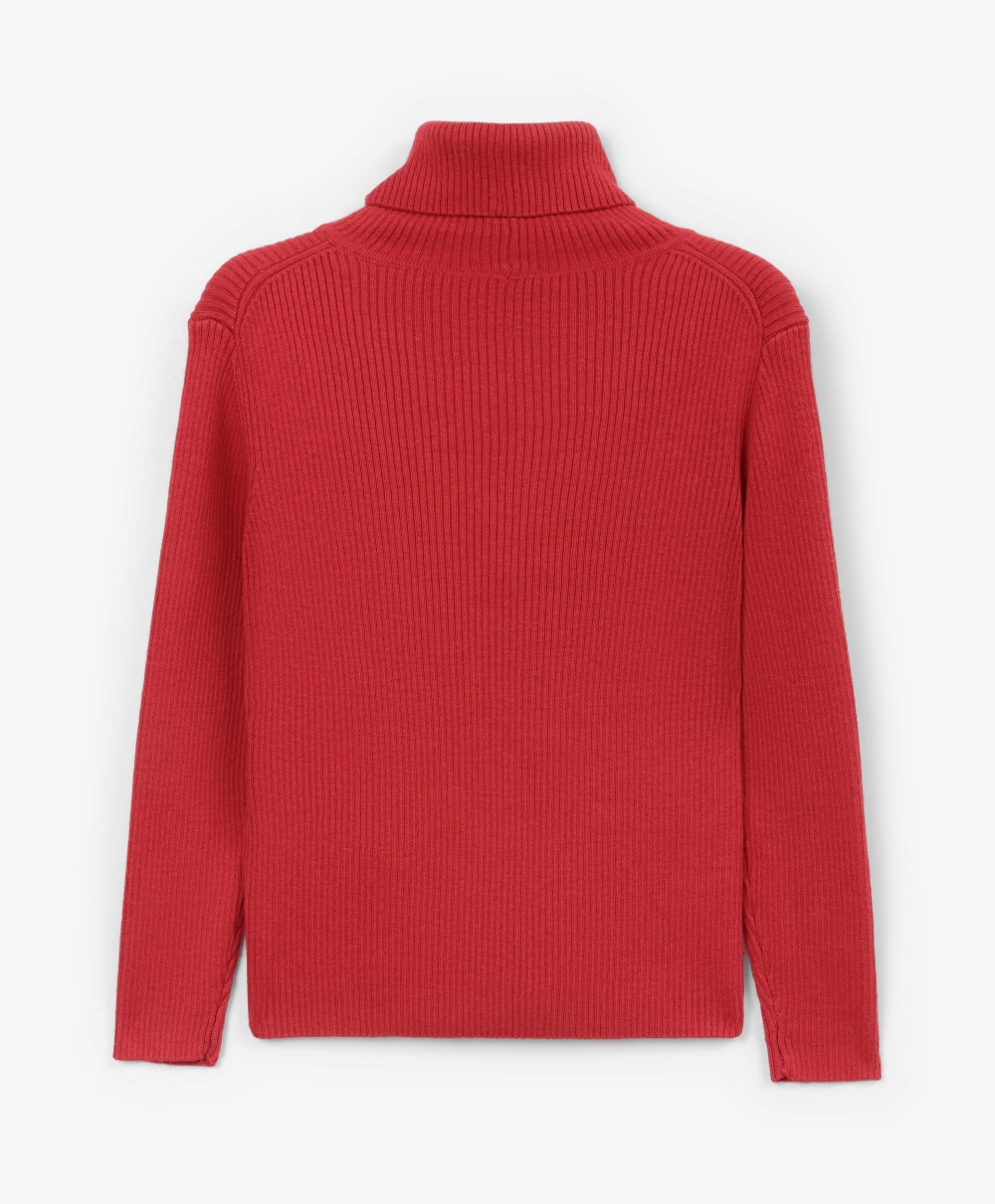 Красная вязаная водолазка полуприлегающего силуэта – основа модного и комфортного осенне-зимнего гардероба девочки! Водолазка связана из мягкой смесовой пряжи с добавлением натуральной шерсти, обеспечивающей тепло и приятные тактильные ощущения.