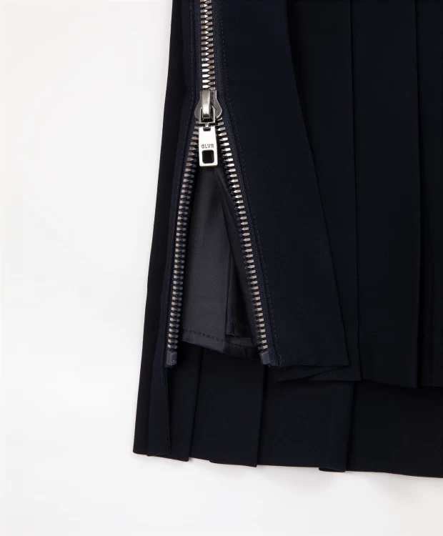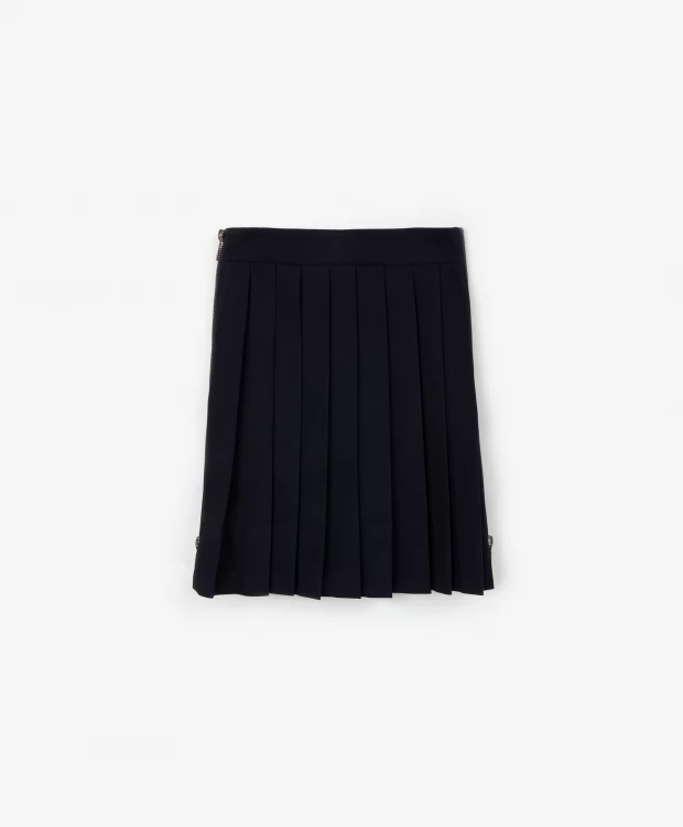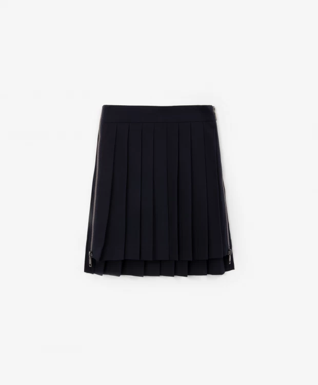 Синяя юбка в складку - современное прочтение классики! Дизайн модели построен на  модных выразительных элементах, придающих знакомому изделию остроту и экстравагантность. Заниженная длина задней части делает линию низа неравномерной, ступенчатой.  Блестящие функциональные молнии в боковых швах позволяют создавать многослойные комплекты с леггинсами, брюками, шортами. Юбка выполнена из плотного мягкого текстиля, зарекомендовавшего себя  как красивый, практичный, износостойкий материал, неприхотливый в уходе. Юбка имеет вискозную подкладку, способствующую комфортному скольжению изделия при движении.