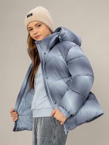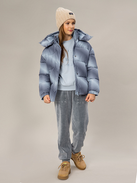 Зимняя стеганая куртка для девочки с градиентным принтом — надежная защита от холода. Модель изготовлена из качественной ткани с водоотталкивающей пропиткой DWR, которая защищает от влаги. Утеплитель из искусственного пуха плотностью 350 г/м² обеспечивает комфортное тепло в морозную погоду. Практичная конструкция включает съемный регулируемый капюшон для дополнительной защиты от ветра, удобную застежку-молнию и ветрозащитную планку. Два прорезных кармана на молнии позволяют безопасно хранить необходимые вещи. Эластичные манжеты по низу рукавов создают комфортную посадку и защищают от проникновения холодного воздуха. Куртка отлично подходит для зимних прогулок и повседневной носки, сочетая в себе практичность, комфорт и модный дизайн.