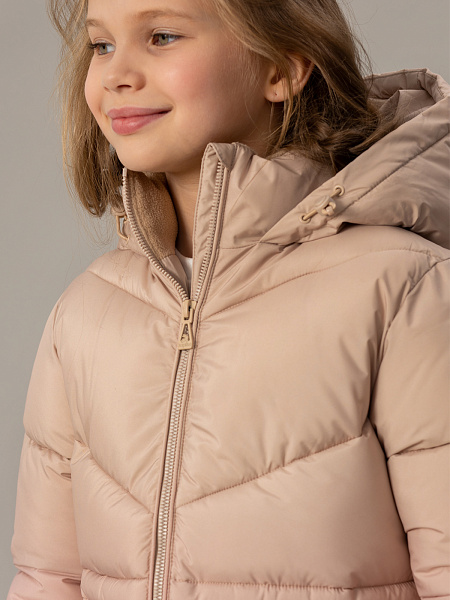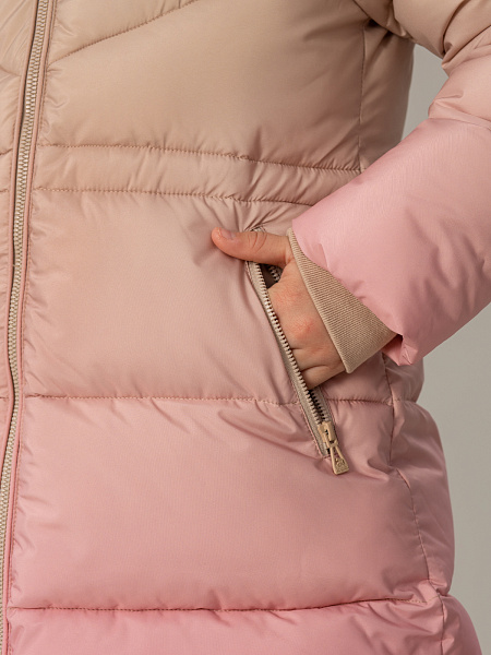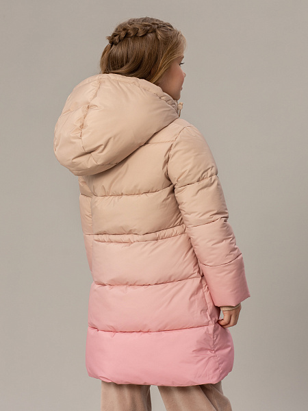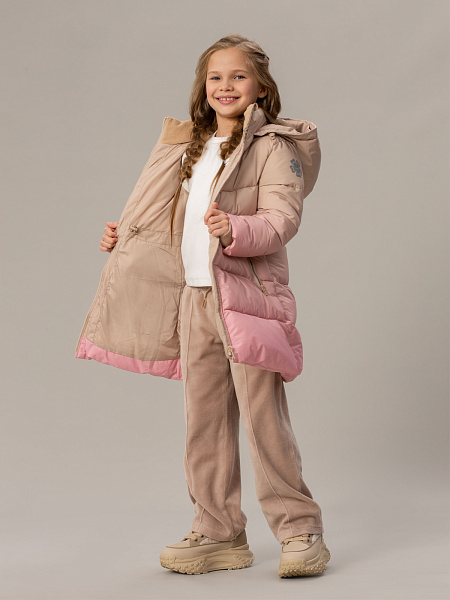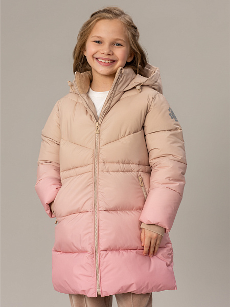 Зимняя куртка для девочки А-силуэта станет незаменимым элементом гардероба в холодное время года. Модель выполнена из ткани с градиентным принтом, плавно переходящим из нежных бежевых в романтичные розовые тона. Ткань верха — с мембраной 5000/5000, которая надёжно защищает от ветра и осадков, при этом обеспечивая отличную воздухопроницаемость. Это позволяет ребёнку чувствовать себя комфортно даже при активном движении. Утеплитель — искусственный пух плотностью 350 г/м², который эффективно сохраняет тепло даже в сильные морозы. Практичные детали включают регулируемый капюшон для дополнительной защиты от непогоды, внутреннюю утяжку по поясу, позволяющую настроить посадку, и трикотажные манжеты, обеспечивающие дополнительное сохранение тепла.