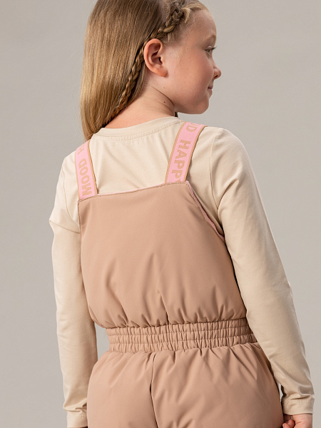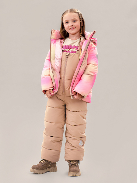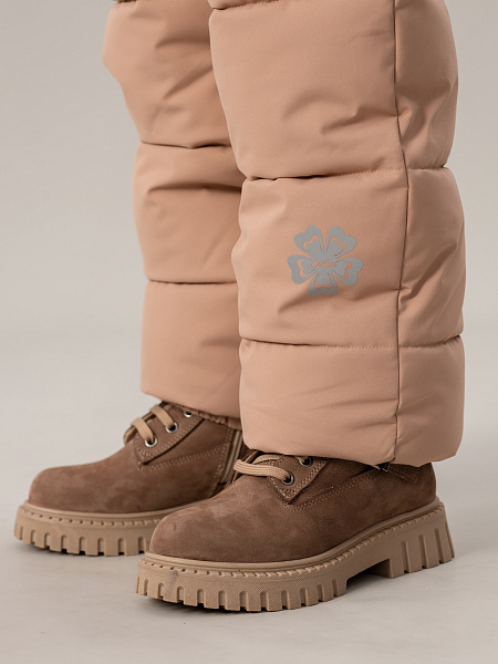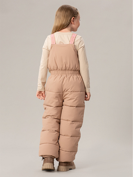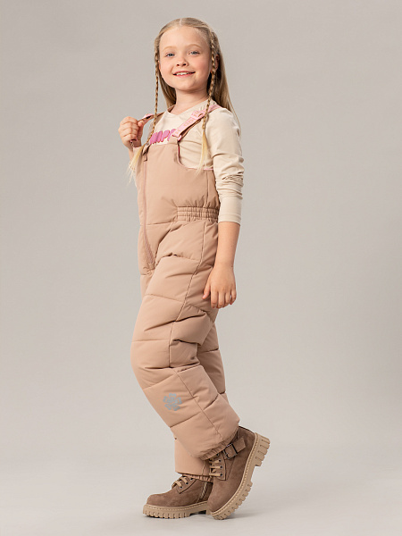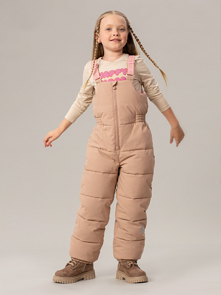 Утеплённый бежевый полукомбинезон для девочки — идеальное решение для зимних прогулок. Выполнен из мембранной ткани 5000/5000, которая надёжно защищает от ветра и осадков. В качестве утеплителя используется искусственный пух плотностью 200 г/м² в сочетании с синтепоном 100 г/м², что обеспечивает отличную теплоизоляцию. Для максимального комфорта внутренняя подкладка изготовлена из мягкого микрофлиса. Регулируемые эластичные лямки обеспечивают удобную посадку, а резинки по низу брючин эффективно защищают от попадания снега. Практичная застёжка на молнию позволяет быстро надевать и снимать изделие. Этот полукомбинезон станет незаменимым элементом гардероба ребенка в холодное время года.