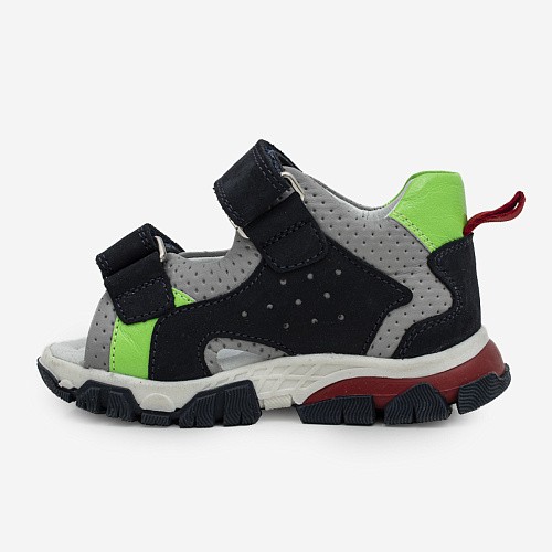 Модные сандалии для мальчика из натуральной кожи. Подкладка из натуральной кожи и наличие дополнительных отверстий обеспечивают отличную вентиляцию, регулируют температурный режим. Жесткий задник и подсводник обеспечивают правильную постановку стопы и комфорт. Долговечная ТЭП подошва продлевает срок службы обуви.