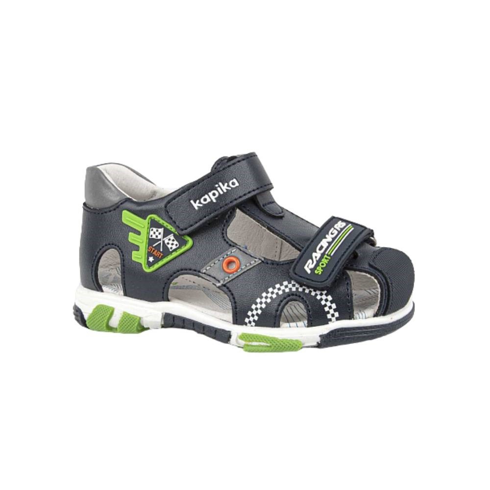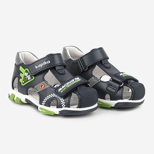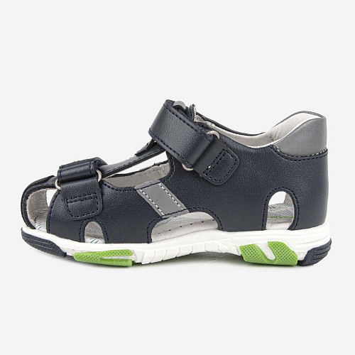 Закрытая модель сандалий для мальчика. Верх модели сочетает в себе натуральную кожу и экокожу. Наличие жесткого задника и подсводника обеспечивает правильную фиксацию стопы и профилактический эффект для всего опорно-двигательного аппарата. Подкладка и стелька сделаны из натуральной кожи. Застежки- липучки позволяют регулировать обувь по полноте. Долговечная ТЭП подошва продлевает срок службы обуви.