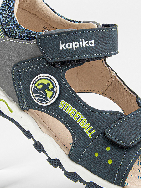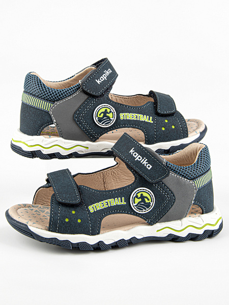 Сандалии для мальчика синего цвета с открытой носочной частью. Имеют жесткий задник и подсводник для правильной фиксации стопы. Подкладка и стелька из натуральной кожи обеспечивают комфорт при ношении в течение всего дня. Верх изделия выполнен из комбинации натуральной и экокожи. Долговечная подошва из ТЭП продлевает срок службы изделия.