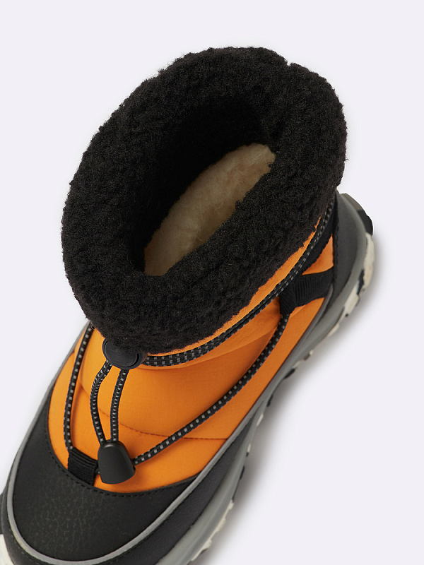 Стильные детские сапожки рассчитаны на температуру от -15 до -30 ℃. Материал верха не пропускает воду, а 200 г утеплителя 3M Thinsulate гарантирует тепло даже в мороз. Водоотталкивающая мембрана надежно защищает от влаги, поэтому можно спокойно кататься на горке и строить снежные замки.