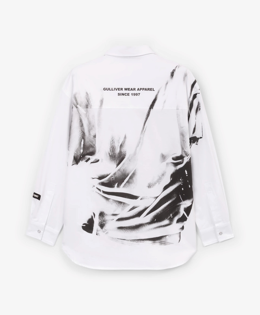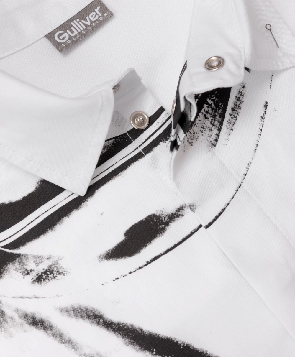 Рубашка с длинным рукавом для мальчика прямого свободного кроя белая с принтом Артикул: 22510BJC2301