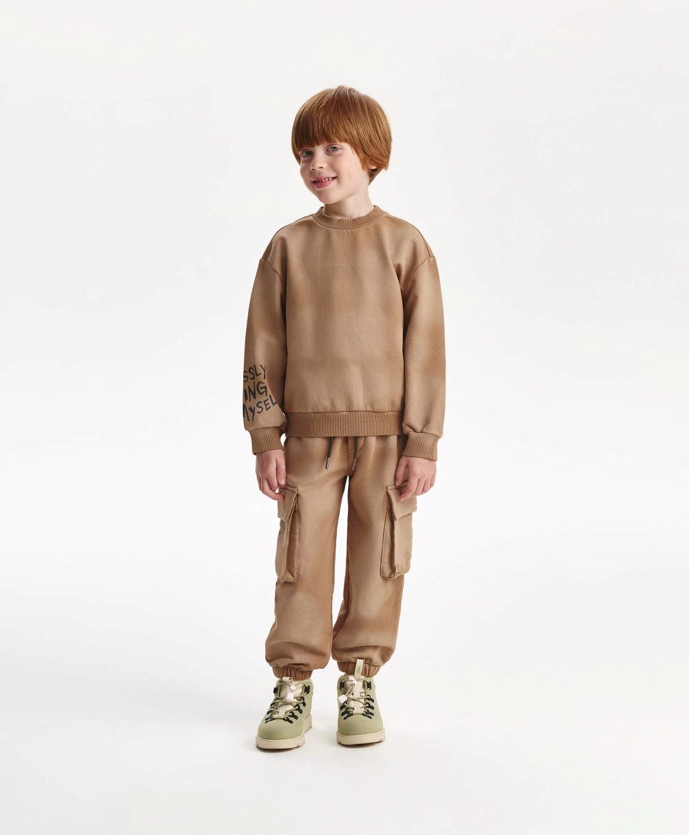 Брюки-джоггеры из хлопкового футера с мягкой петельчатой изнанкой - основа практичного и функционального осеннего гардероба ребенка. Фишка модели - объемные и функциональные карманы-карго. Они придают брюкам модный небрежный вид, делают трикотажные штаны дерзкими и драйвовыми. Карманы в боковых швах, пояс на резинке с кордами создают удобство в эксплуатации вещи.