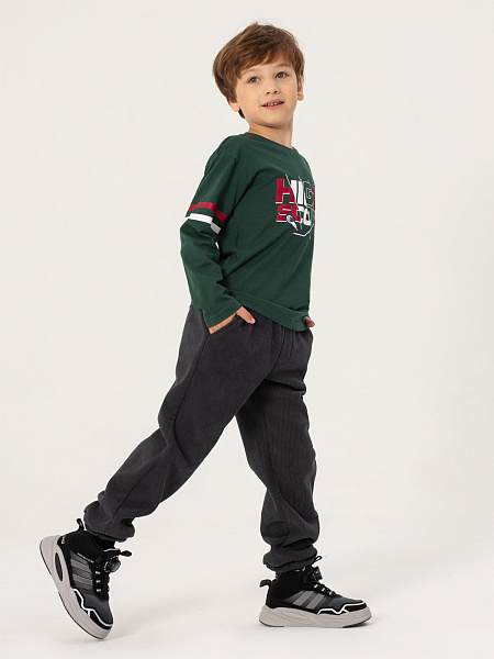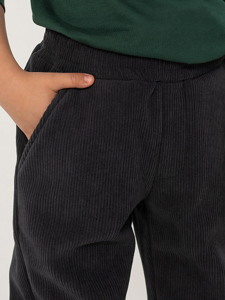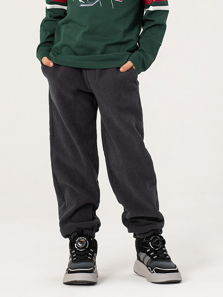 Вельветовые брюки для мальчика в темно-сером цвете — это идеальный выбор для комфортного и стильного образа. Изготовленные из мягкого вельвета с флисом внутри, они обеспечивают тепло и уют в прохладную погоду. Эластичная резинка по низу брючин и в поясе гарантирует удобную посадку и свободу движений. Практичность модели дополняют два боковых кармана. Универсальный темно-серый цвет позволяет сочетать брюки как с официальной одеждой, так и с повседневной, делая их отличным выбором для активных детей.