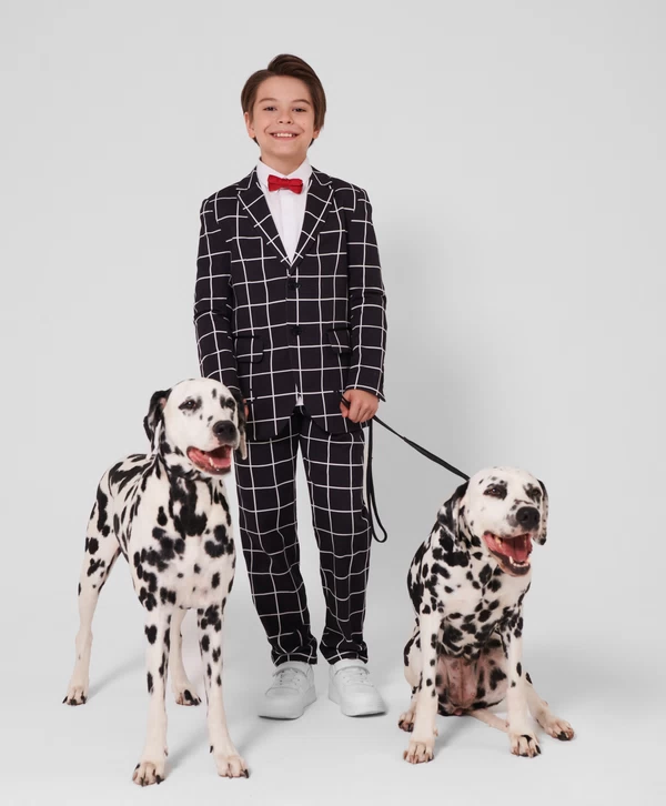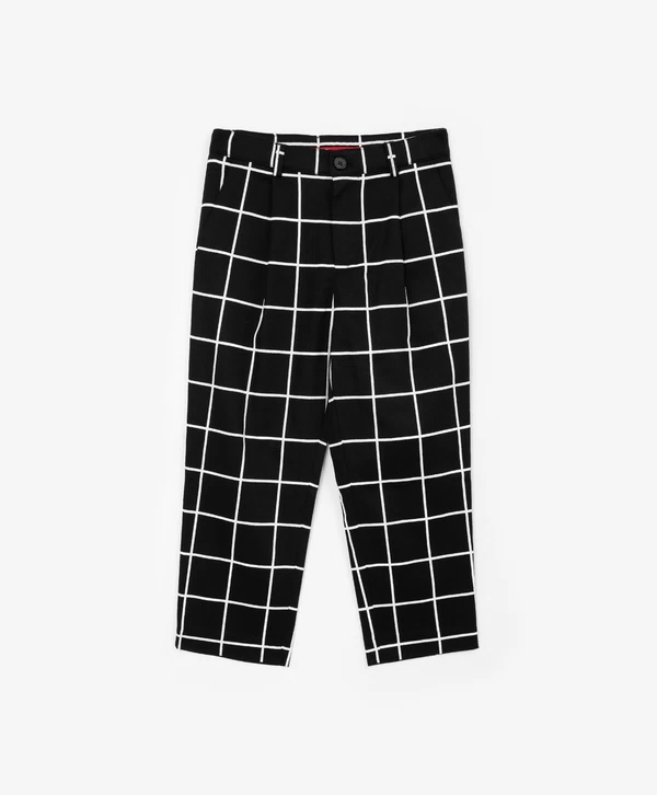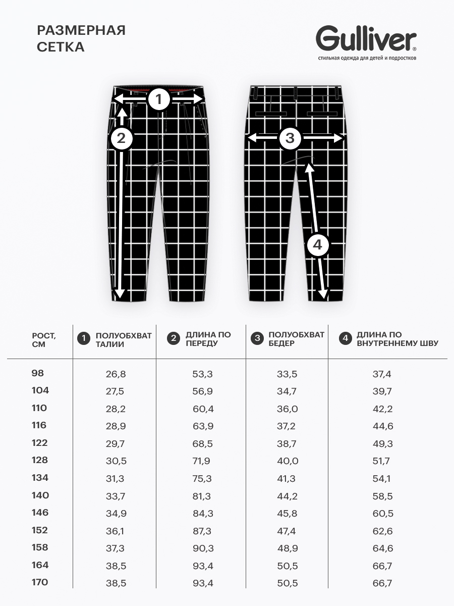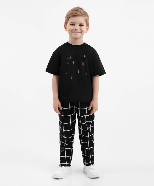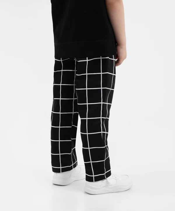 Брюки зауженные текстильные в клетку чёрные для мальчика Артикул: 224GPBC6303