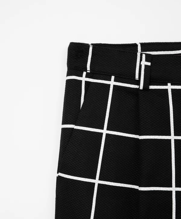 Элегантные чёрные брюки в модную крупную клетку станут отличным выбором как для торжественных случаев, так и для повседневных стильных образов. Изделие выполнено из плотного и формоустойчивого текстиля с деликатной фактурой. Шелковистая подкладка обеспечивает комфортную эксплуатацию.
