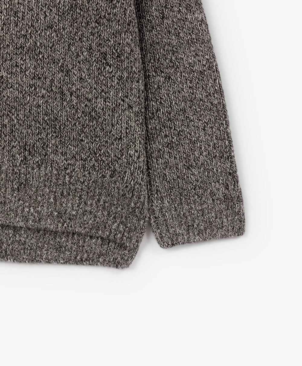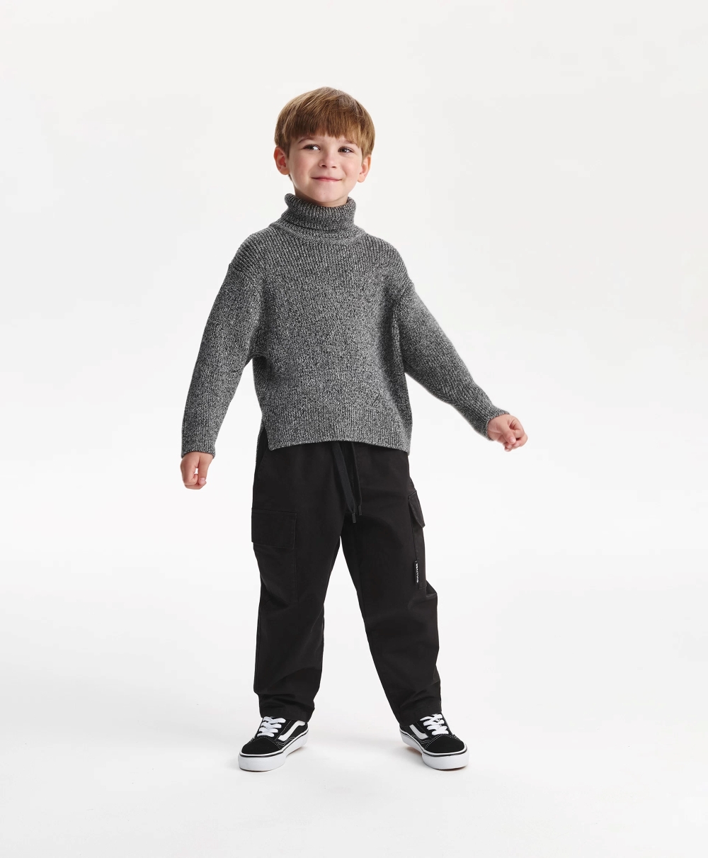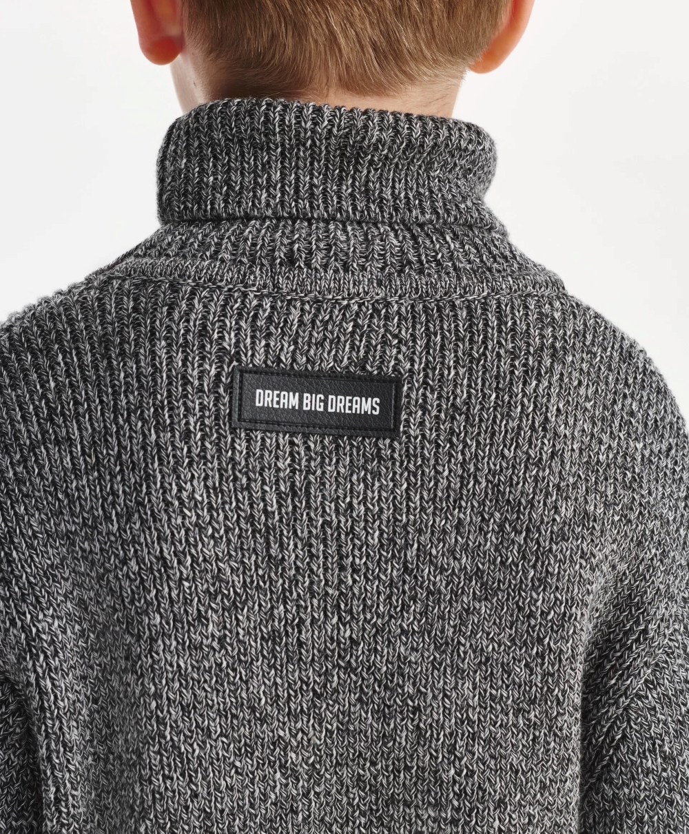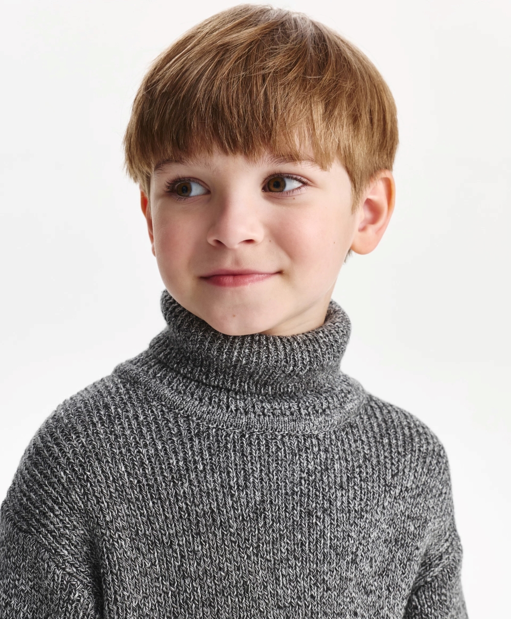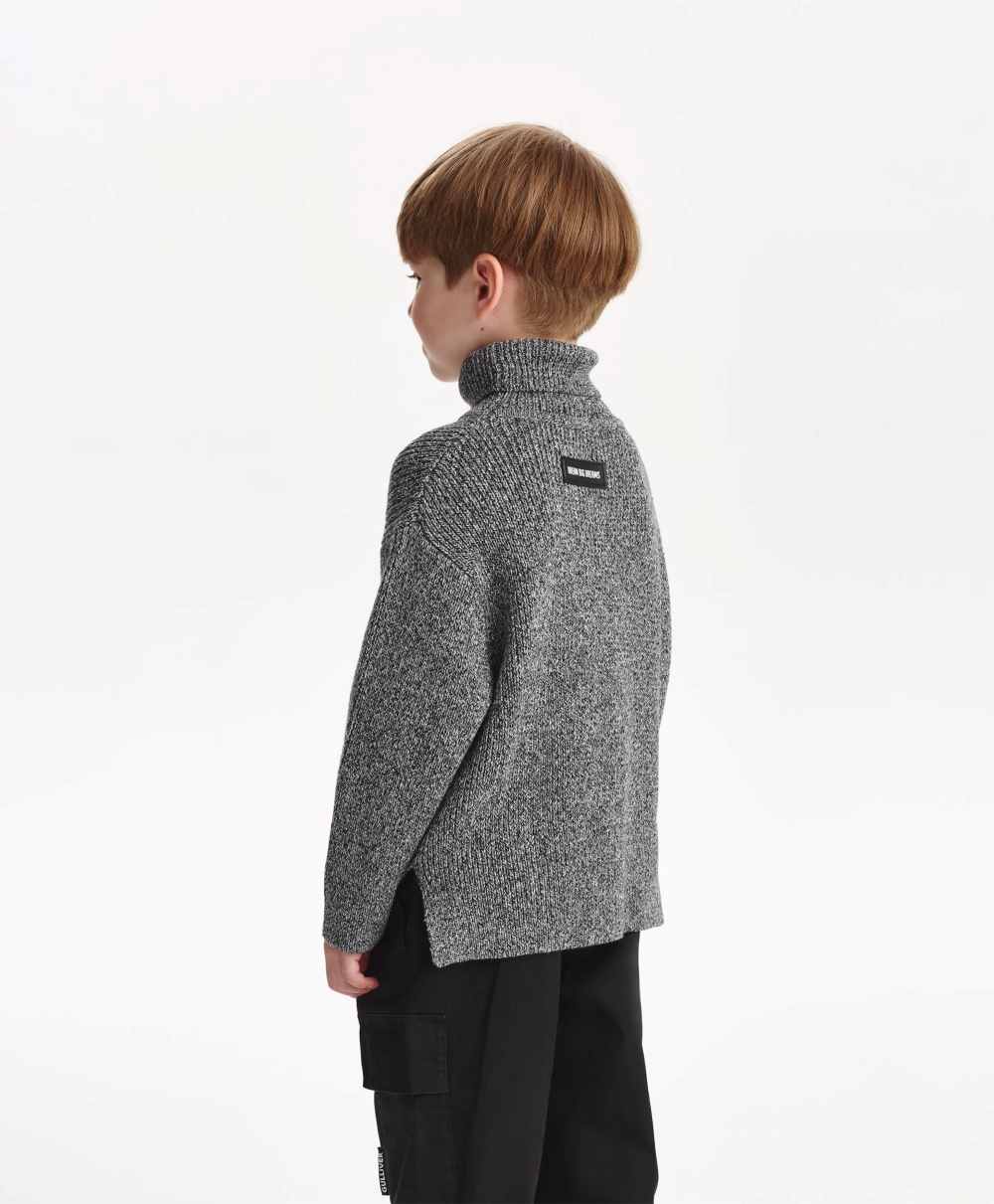 Теплый уютный свитер — неотъемлемая составляющая осенне-зимнего гардероба мальчика. Выполненный из полушерстяной меланжевой пряжи, свитер мягок, пластичен, приятен на ощупь. Объемная форма, силуэт умеренный оверсайз, заниженная линия спинки, разрезы в боковых швах придают свитеру комфорт и свободу стиля кэжуал, делают образы с ним расслабленными и непринужденными. Кожаная нашивка с шрифтовыми элементами служит небольшим контрастным акцентом, подчеркивающим остроту и концептуальность модели.