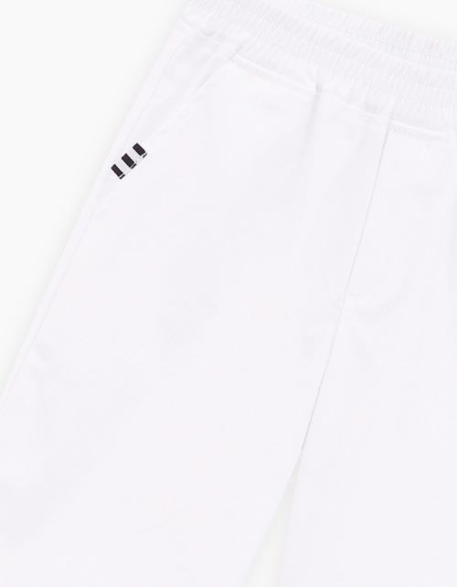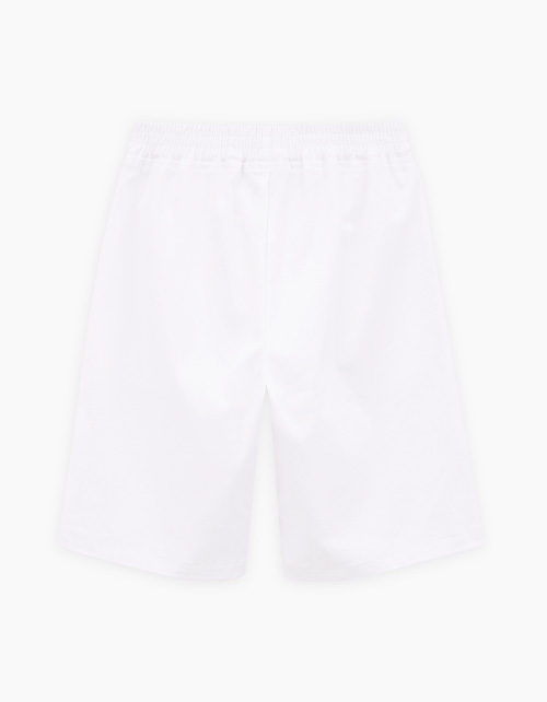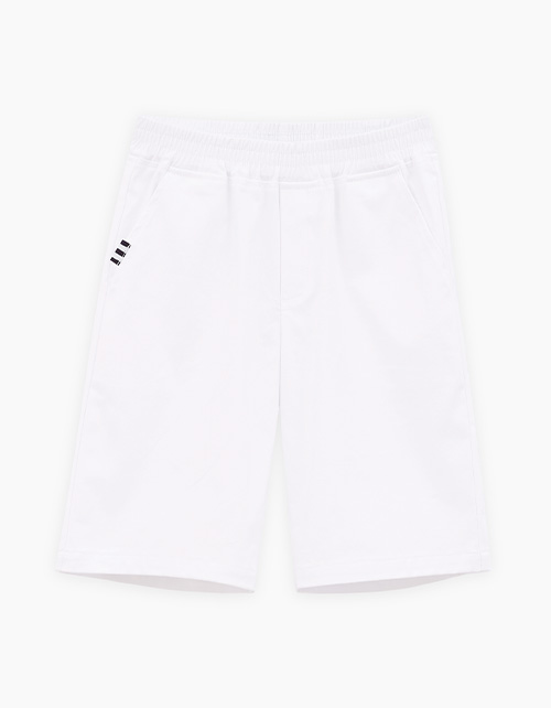 Белые шорты из твила. Модель прямого силуэта. Средняя посадка, мягкий эластичный пояс. Дополнены карманами-хулиганами. Лаконичный декор репсовой тесьмой. Можно позиционировать как модель унисекс.