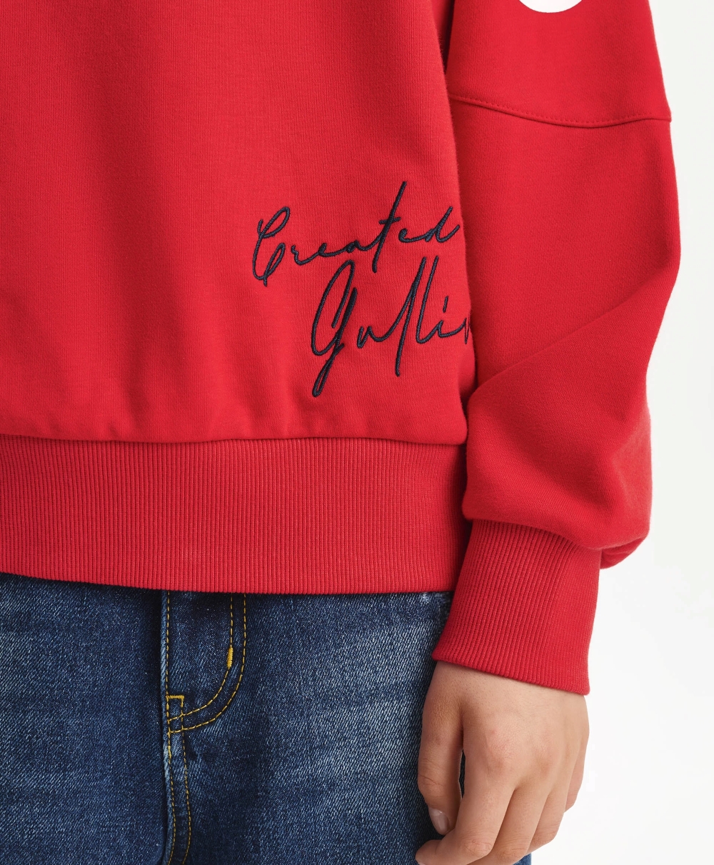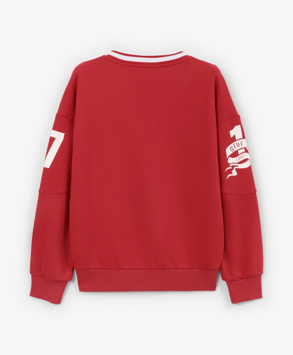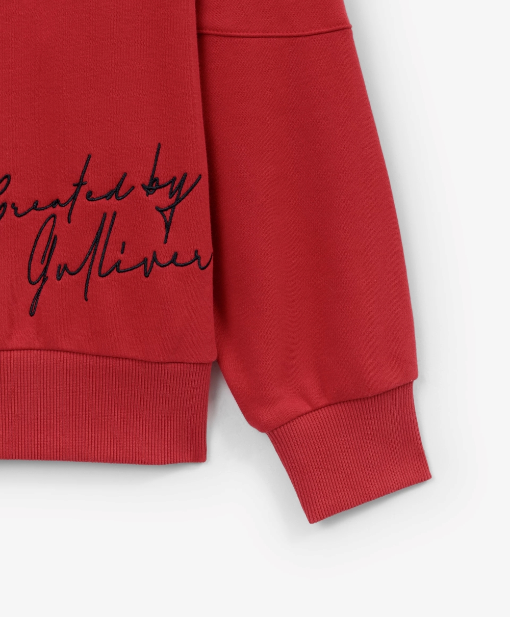 Яркий, динамичный, драйвовый красный свитшот из футера с мягкой петельчатой изнанкой привнесет в образ мальчика динамику и остроту спортивного стиля. В оформлении свитшота использованы крупные шрифтовые принты, контрастная окантовка по V-образной горловине, отражающих драйвовый вайб коллекции Gulliver "Колледж", вдохновленной атмосферой частных школ, спортивных команд, объединенных яркими визуальными символическими атрибутами.