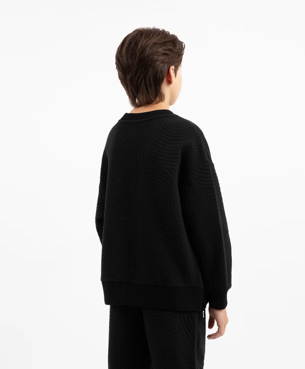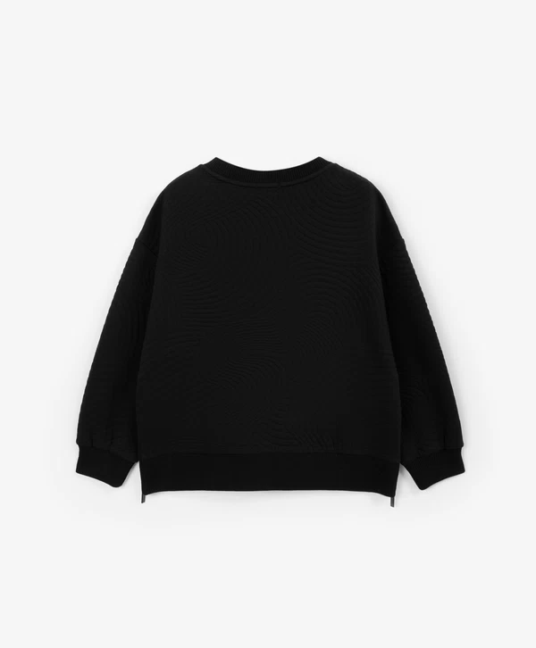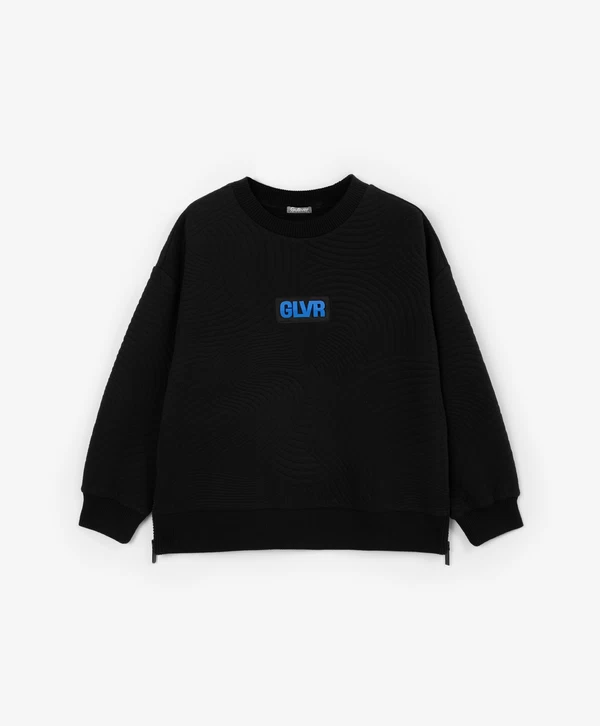Прекрасное решение для активного времяпровождения — чёрный свитшот умеренно свободного кроя! Изделие выполнено из пластичного формоустойчивого трикотажа. Особенность модели в молниях в боковых швах, с помощью которых можно регулировать объём изделия в нижней части, подчеркнув многослойность образа. В оформлении свитшота использован линеарный тотал-принт. На передней части расположена нашивка с синими шрифтовыми элементами.