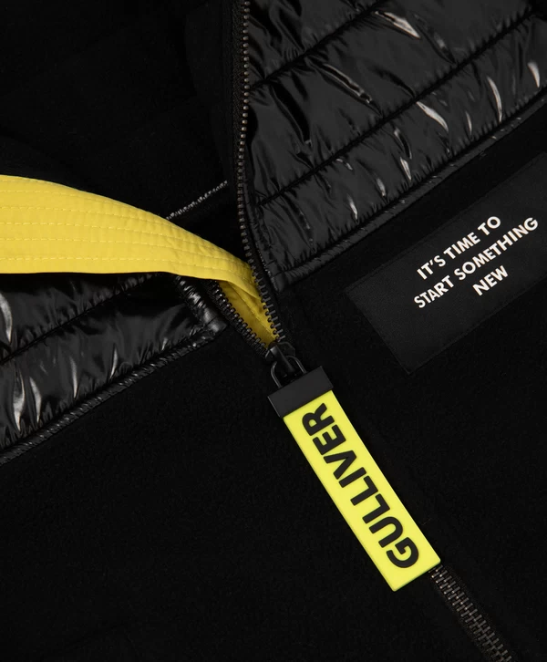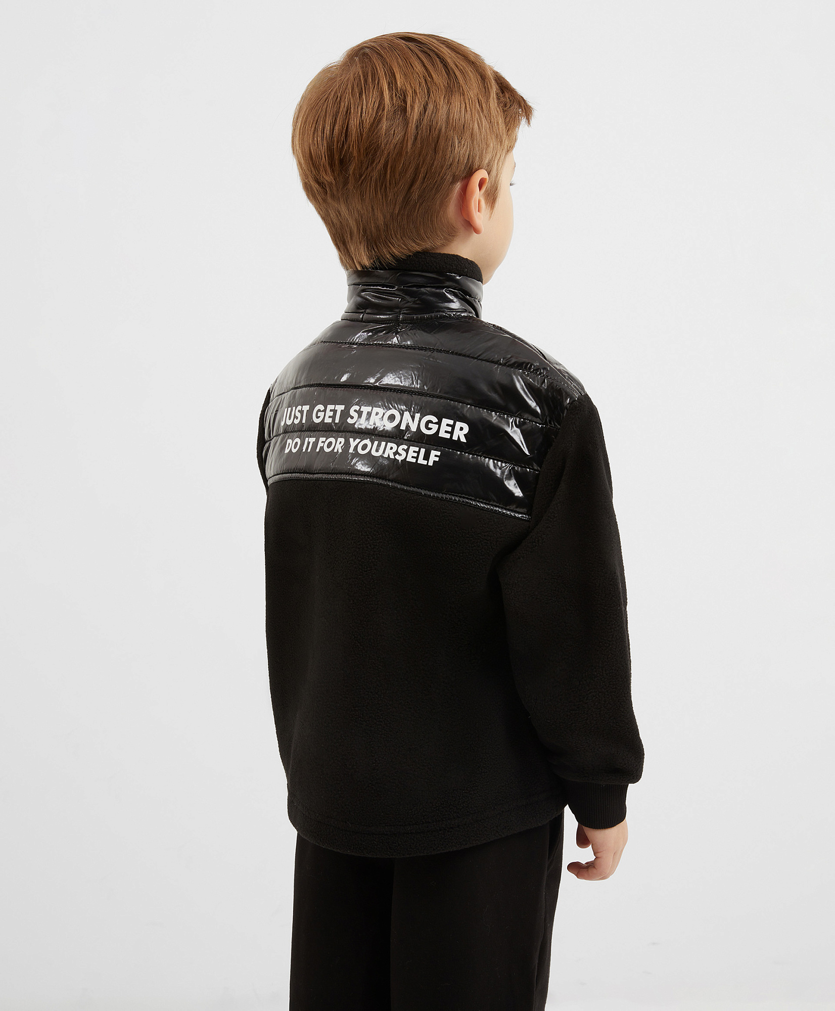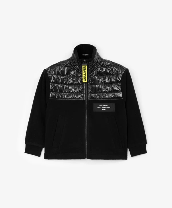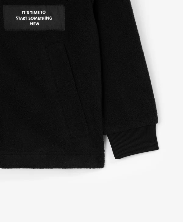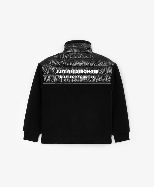 Уникальное сочетание фактур в этой чёрной толстовке умеренно свободного кроя со спущенной линией плеч - залог оригинального образа в спортивном стиле! Изделие выполнено из мягкого и согревающего флиса, который создаёт уют и комфорт. Особенность модели в отделке из блестящей плащовки, которая акцентирует внимание на игре фактур и придаёт толстовке динамичность. Изделие имеет высокую горловину и манжеты. Карманы в боковых швах создают удобство в эксплуатации. На передней части расположена резиновая нашивка с шрифтовыми элементами. В оформлении спинки использован текстовый принт.