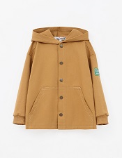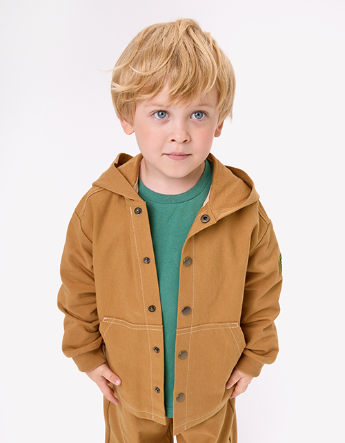 Утилитарный жакет-толстовка. Модель прямого силуэта из мягкого футера с браш-эффектом и твила дарит комфорт и практичность. Капюшон и накладные карманы добавляют удобства, рибана держит форму. Застёжка на кнопки, акцент - крафтовая жаккардовая лейба.
