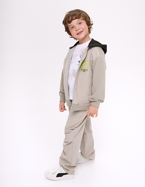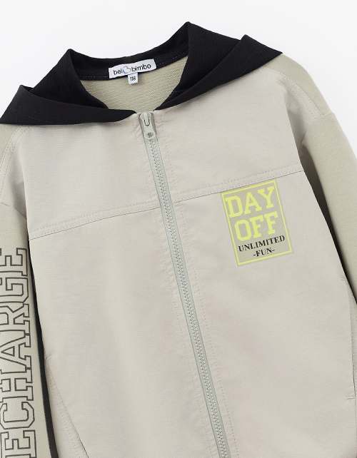 Зип-худи для мальчика. Модель прямого силуэта на рибане по низу из мягкого футера с браш-эффектом и твила - удобная и практичная. Капюшон и карманы в шве добавляют комфорта, застёжка на молнию. Авторский цифровой принт и DTF-плёнка, устойчивые к стиркам.
