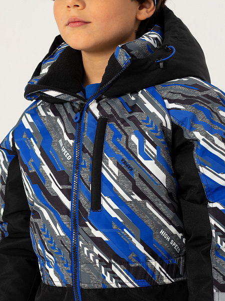 Стильный зимний комбинезон для мальчика с оригинальным принтом создан для активных зимних прогулок. Прочная мембранная ткань 5000/5000 надежно защищает от влаги и ветра, обеспечивая оптимальный микроклимат. Утеплитель из искусственного пуха плотностью 300 г/м² гарантирует тепло в морозную погоду. Модель оснащена практичной молнией с защитой подбородка, регулируемым капюшоном и эластичными манжетами. Водонепроницаемые проклеенные швы и светоотражающие элементы повышают безопасность ребенка. Идеальный выбор для зимних приключений!