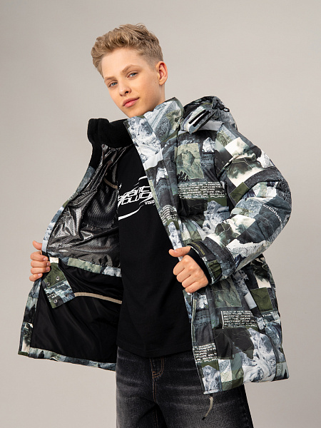 Современный пуховик для мальчиков с оригинальным дизайнерским принтом — идеальное решение для холодной погоды. Прочный материал с мембранными характеристиками 5000 мм / 5000 г/м² надёжно защищает от влаги и ветра, а искусственный пух плотностью 300 г/м² обеспечивает комфортную температуру. Модель оснащена практичным съёмным капюшоном с регулировкой, который можно легко убрать при необходимости. Удобная застёжка-молния дополнена ветрозащитной планкой для максимальной защиты от непогоды. Карманы на молниях добавляют функциональности. Особую практичность пуховику придают эластичные манжеты из риба с регулируемыми патами, которые надёжно защищают от проникновения холода. Внутренняя подкладка Omni Heat эффективно отражает тепло тела ребёнка, возвращая его обратно, что делает пуховик особенно тёплым и комфортным.