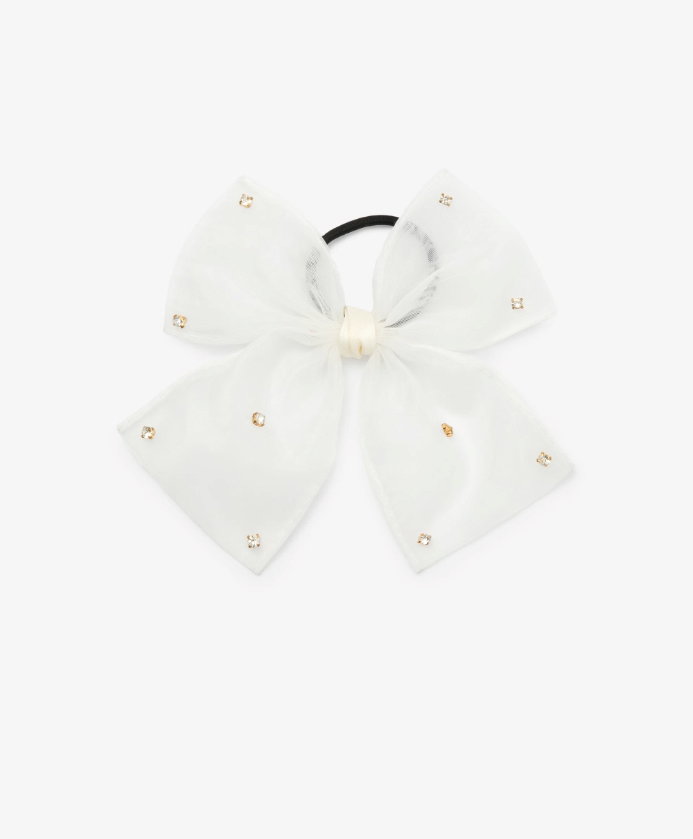 Белая резинка для волос с изящным декором станет завершающим акцентом для школьных образов. Легкий сверкающий текстильный бант придает прическе воздушность и аккуратный вид. Удобная и эластичная основа надежно фиксирует волосы, не травмируя их. Резинка идеально сочетается как с классической школьной формой, так и с повседневной детской одеждой.